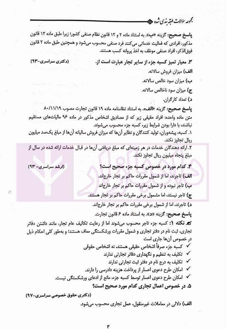 امتیاز و دیدگاه کاربران مجموعه سوالات طبقه بندی شده حقوق تجارت | خسروی