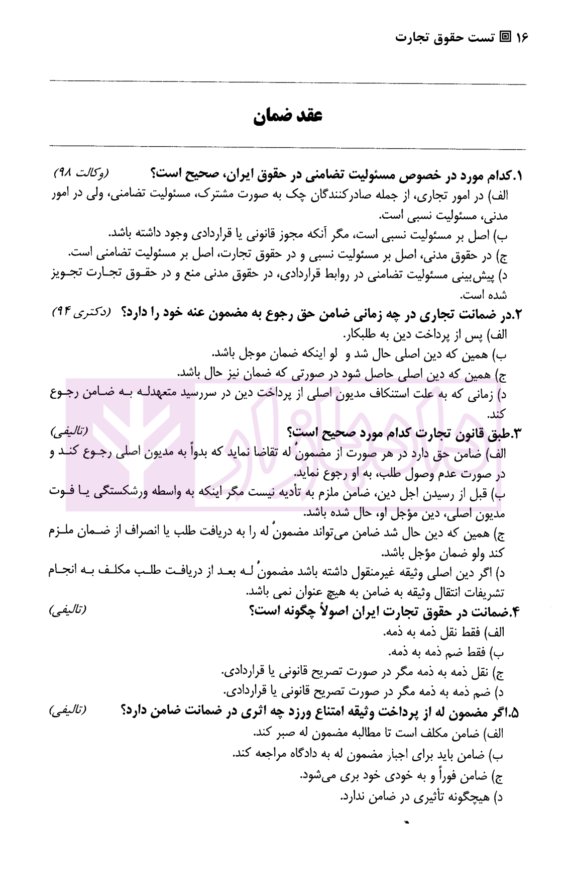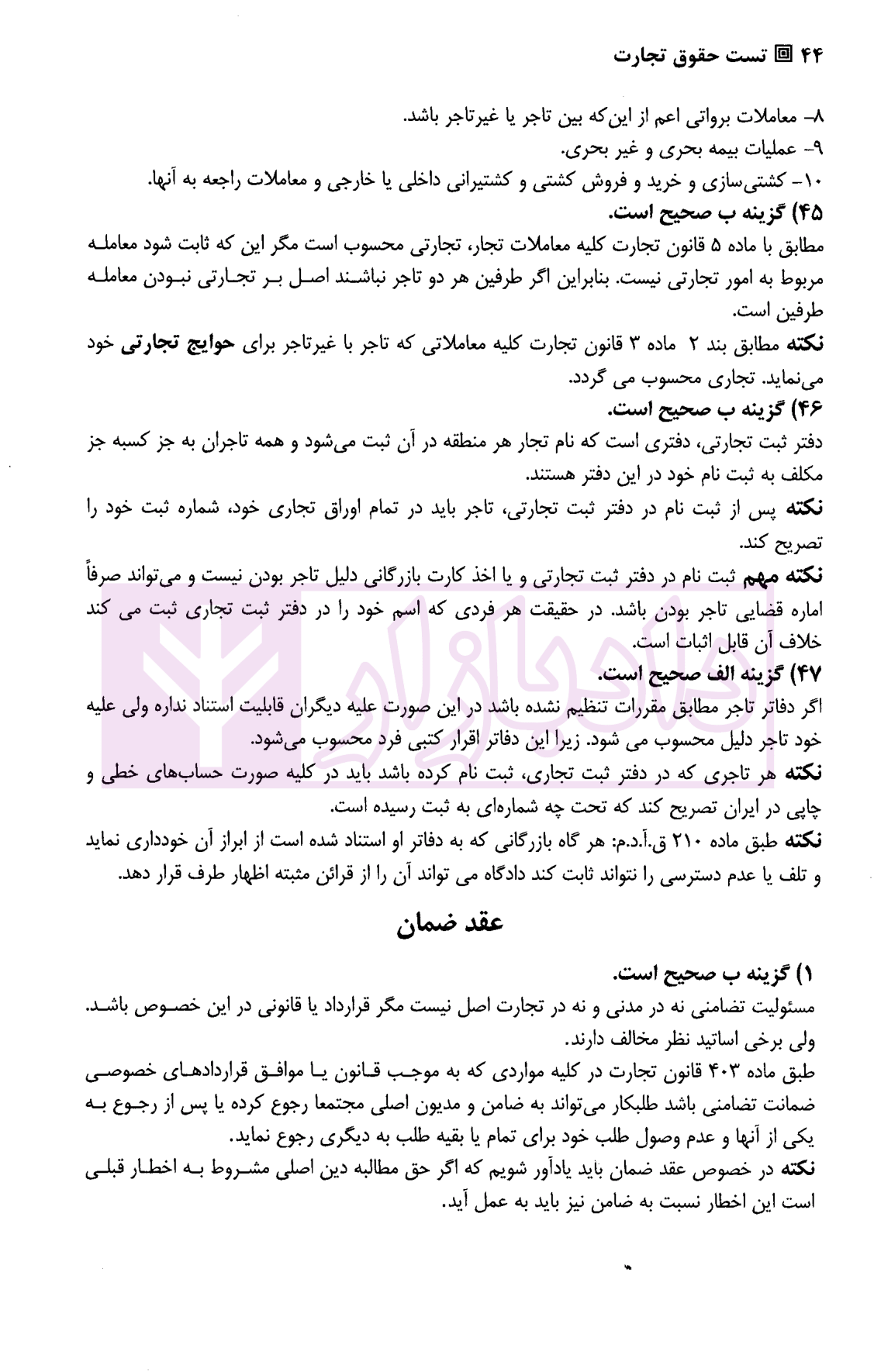 معرفی و فهرست کتاب تست حقوق تجارت | دکتر کمیجانی