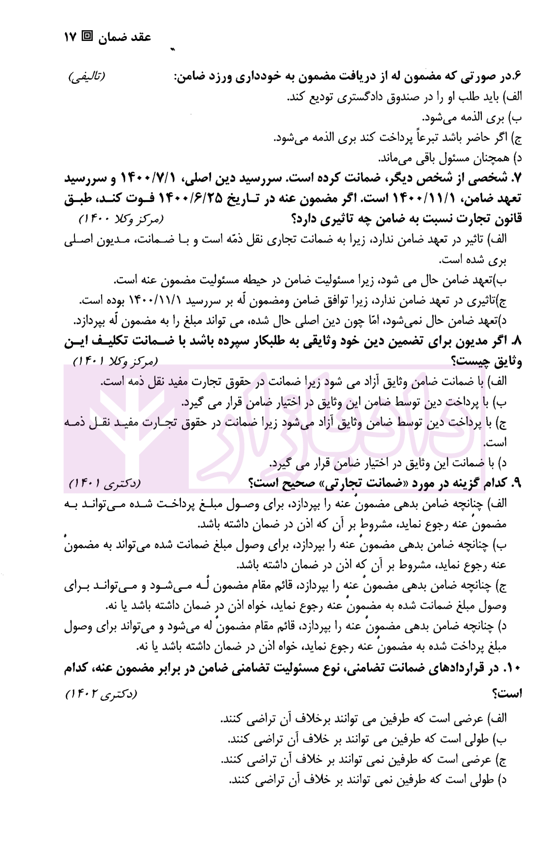 امتیاز و دیدگاه کاربران تست حقوق تجارت | دکتر کمیجانی