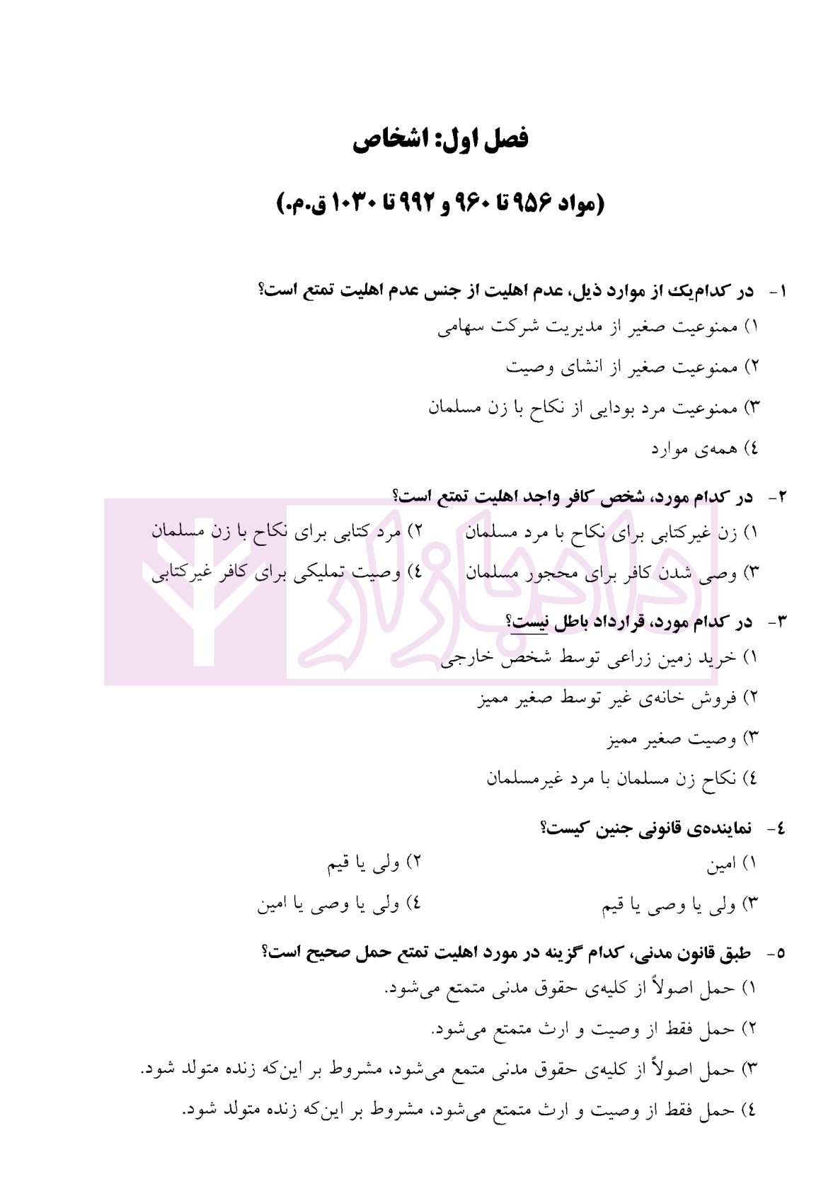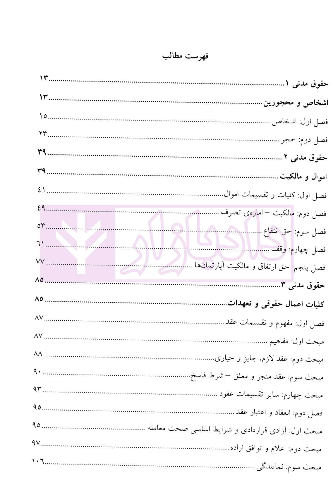 عناوین اصلی کتاب تست حقوق مدنی جلد1 جرعه نوش