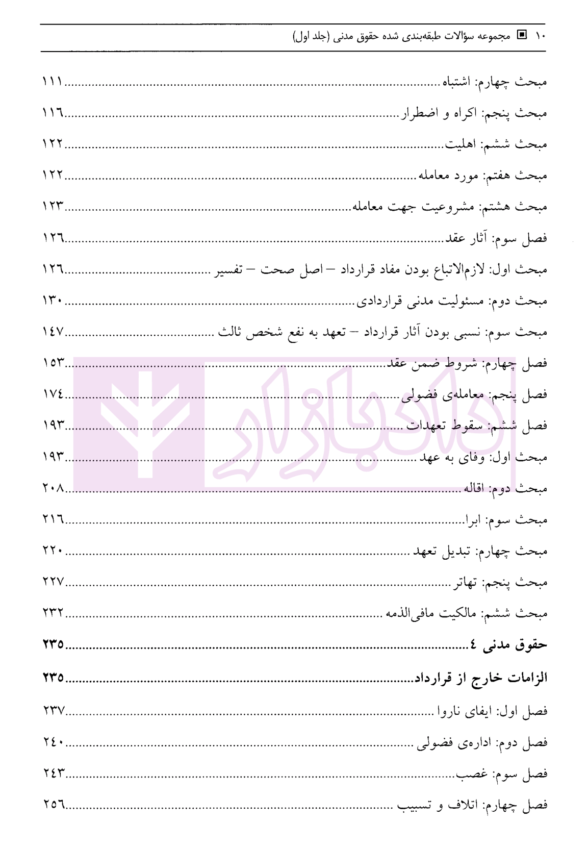 معرفی و فهرست کتاب مجموعه سوالات طبقه بندی شده حقوق مدنی – جلد اول | جرعه نوش