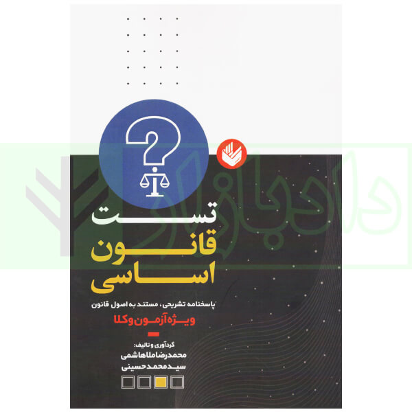 کتاب تست قانون اساسی (ویژه آزمون وکالت) نوشته محمدرضا ملاهاشمی و سید محمد حسینی شامل سوالات تالیفی و طبقه بندی شده قانون اساسی همراه با پاسخ نامه تشریحی و مستند به اصول قانون می‌باشد.
