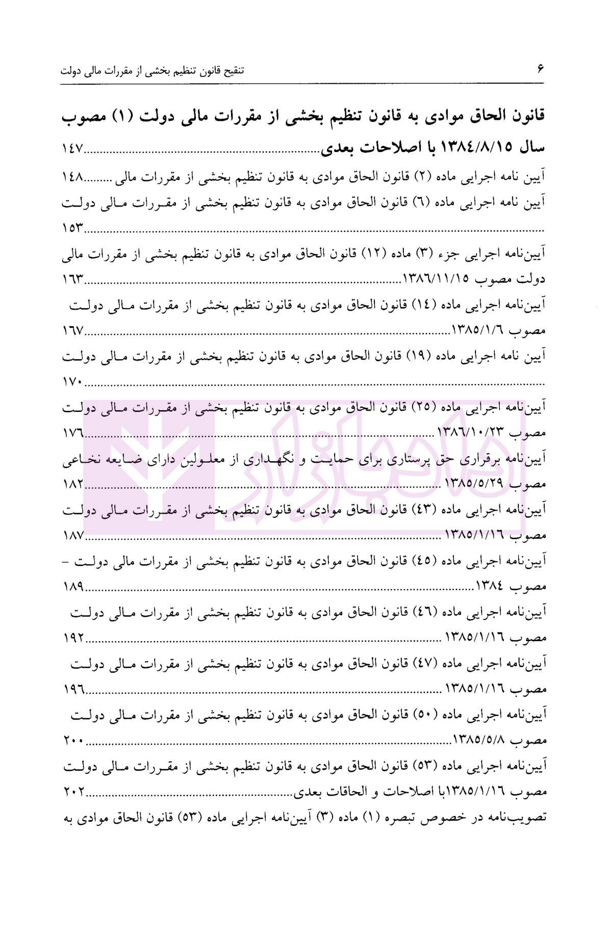 - قانون الحاق موادی به قانون تنظیم بخشی از مقررات مالی دولت (1) مصوب ۸۴/۸/۱۵ با اصلاحات بعدی