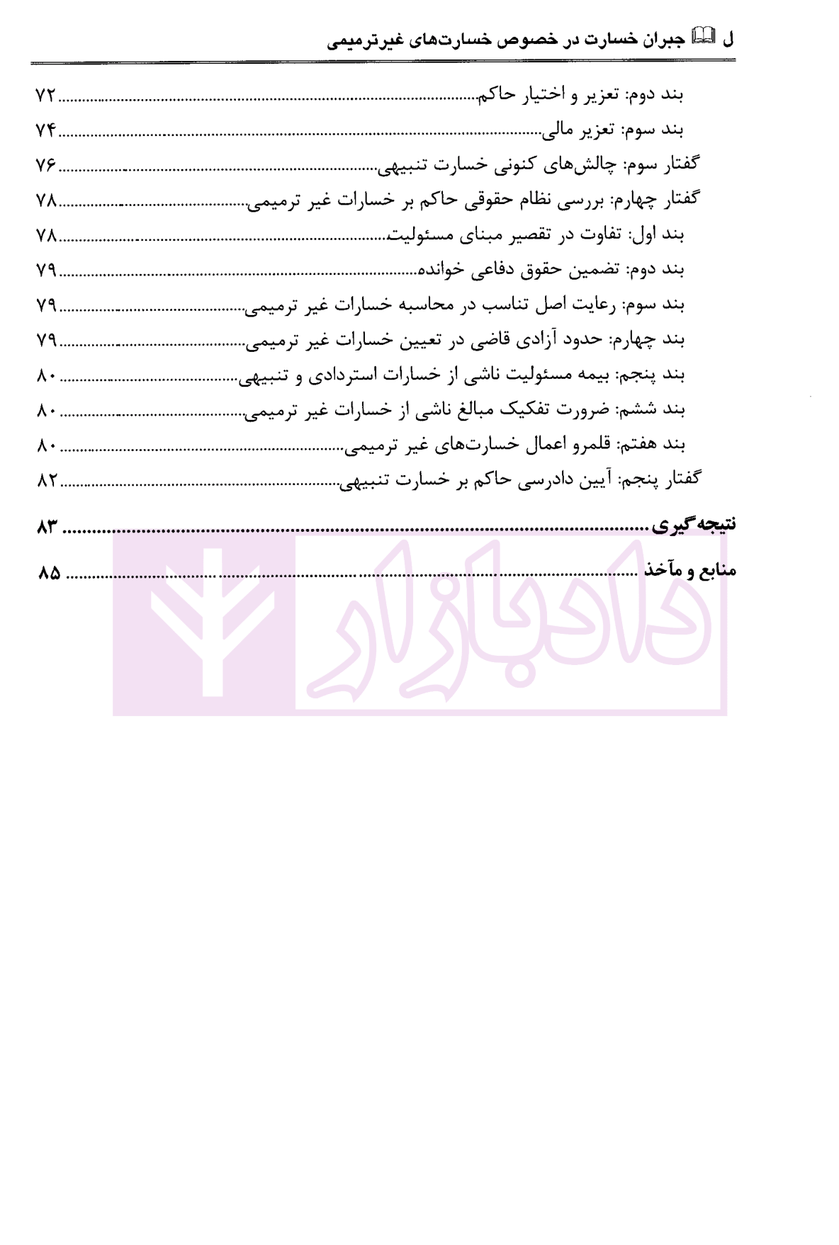 مشخصات و ویژگی کتاب جبران خسارت در خصوص خسارت های غیر ترمیمی | رفیعی