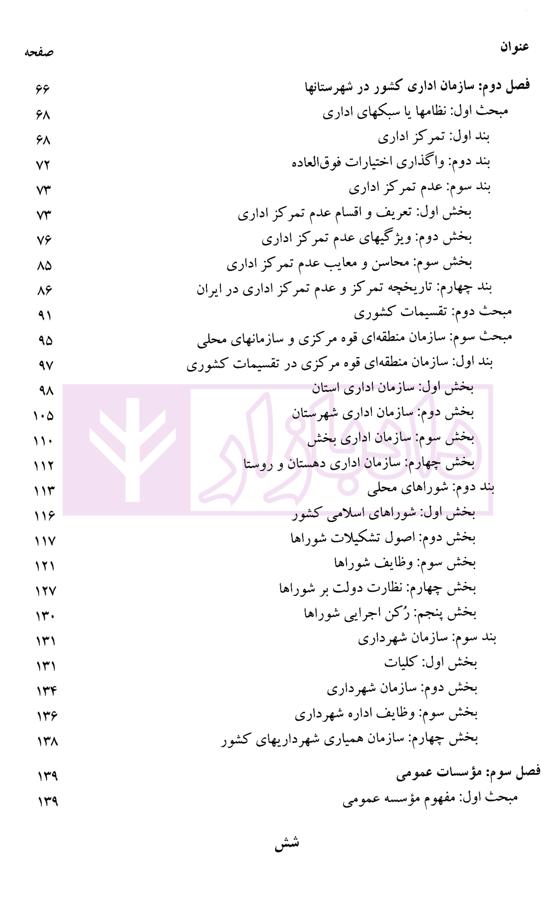 فصل دوم: سازمان اداری کشور در شهرستان ها