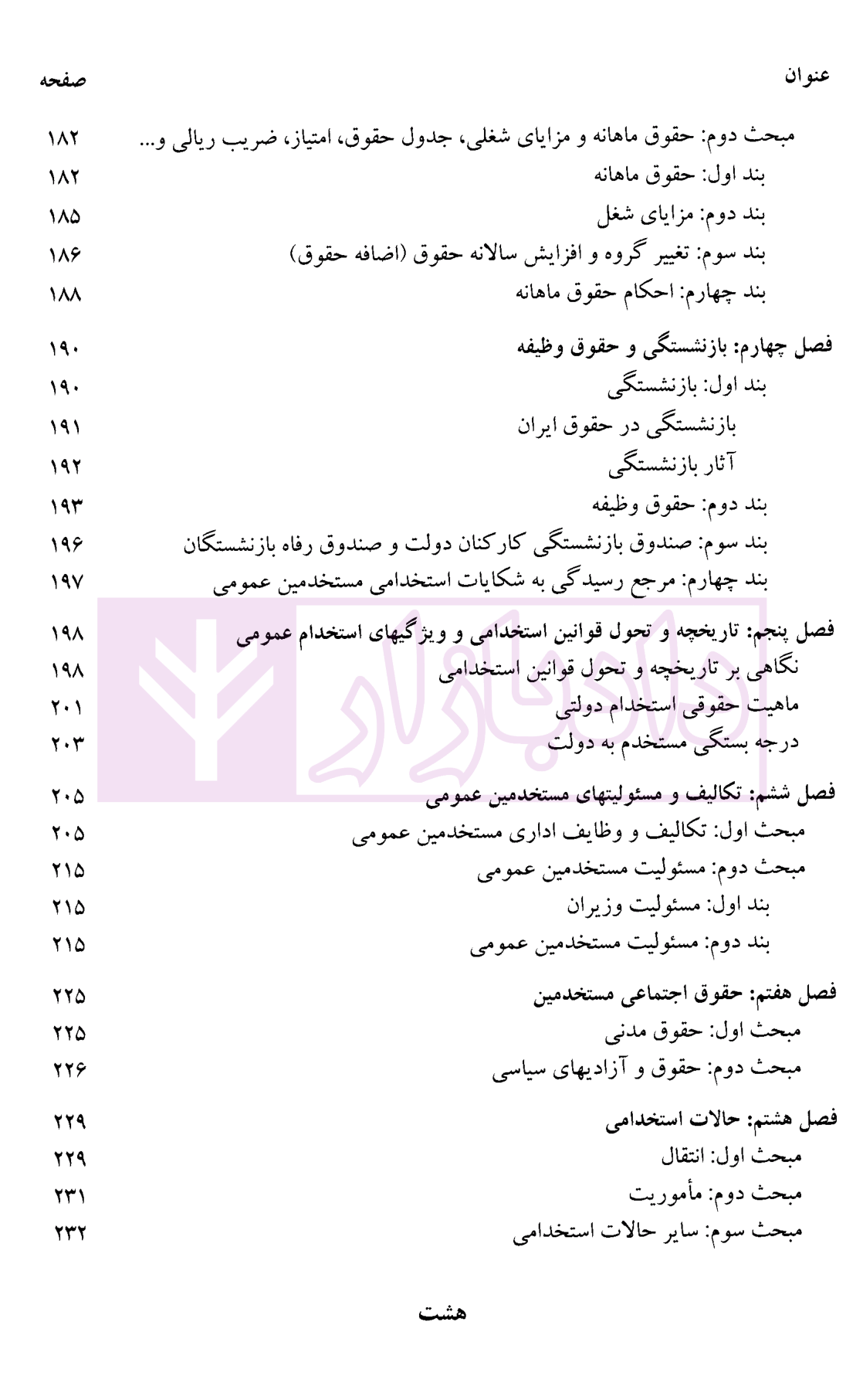 فصل هفتم: حقوق اجتماعی مستخدمین