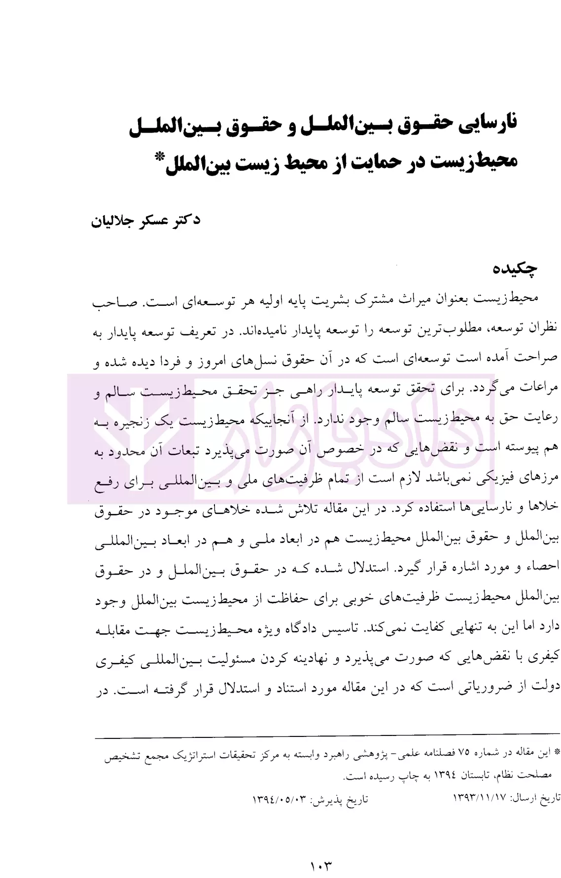 مشخصات و ویژگی کتاب حقوق بین الملل محیط زیست – جلد اول | دکتر جلالیان