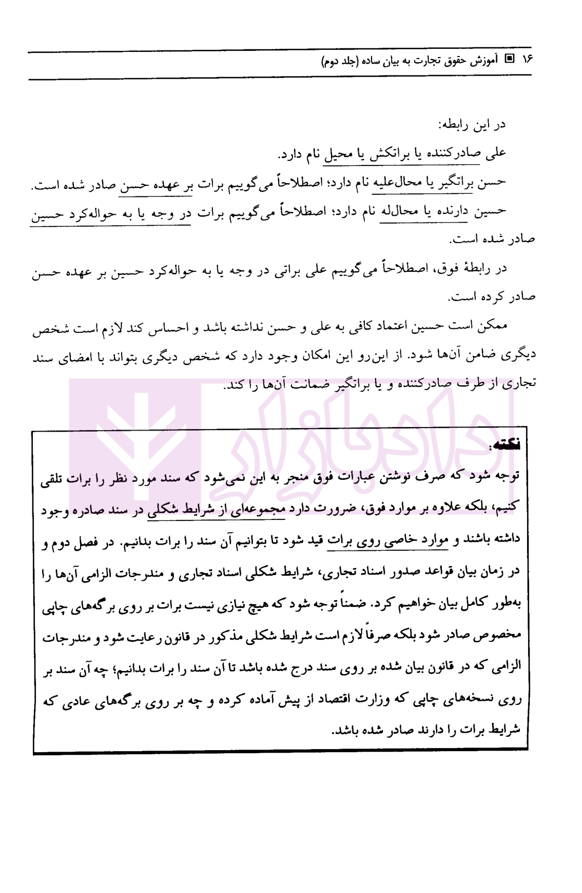 مشخصات و ویژگی کتاب آموزش حقوق تجارت به بیان ساده جلد دوم (اسناد تجاری ورشکستگی) | ناظری