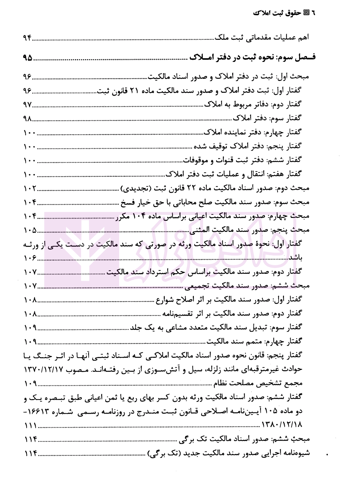 عناوین اصلی حقوق ثبت املاک تفکریان