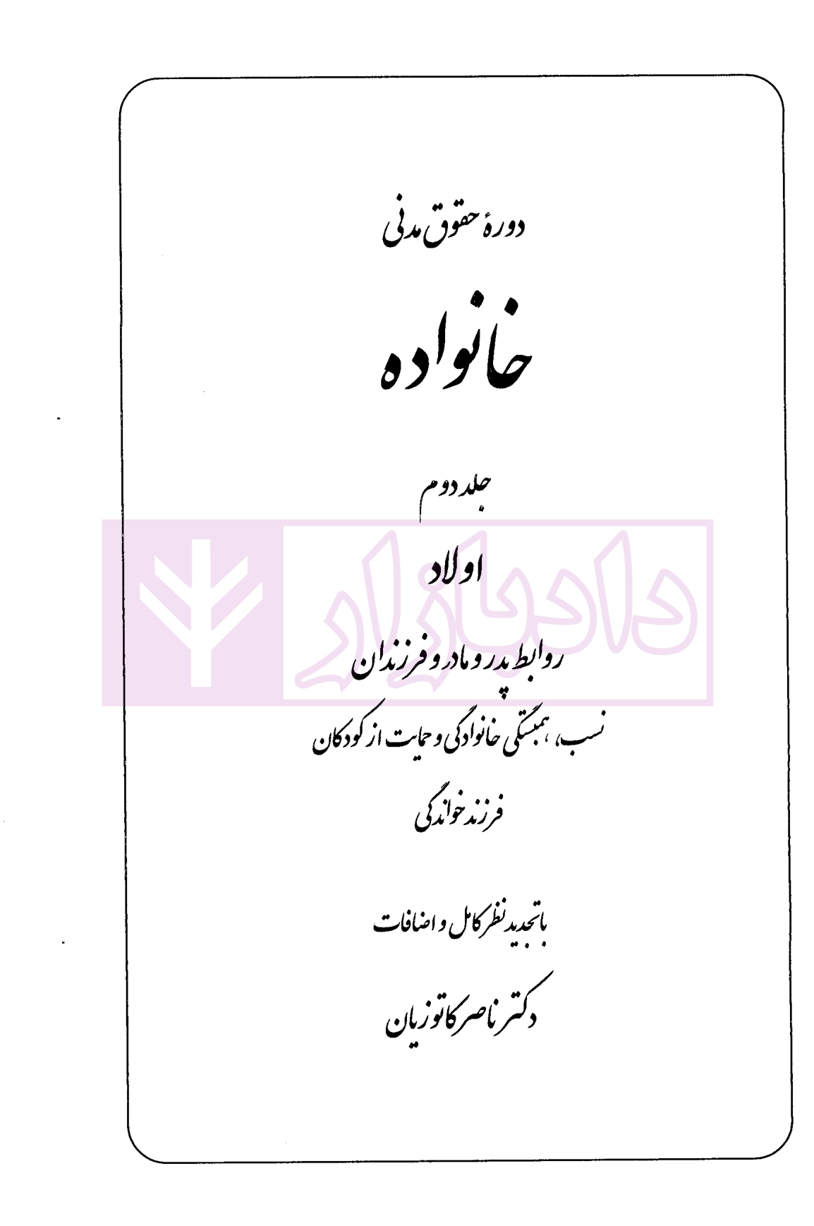 معرفی و فهرست کتاب دوره حقوق مدنی – حقوق خانواده جلد دوم: اولاد، روابط پدر و مادر و فرزندان | دکتر کاتوزیان