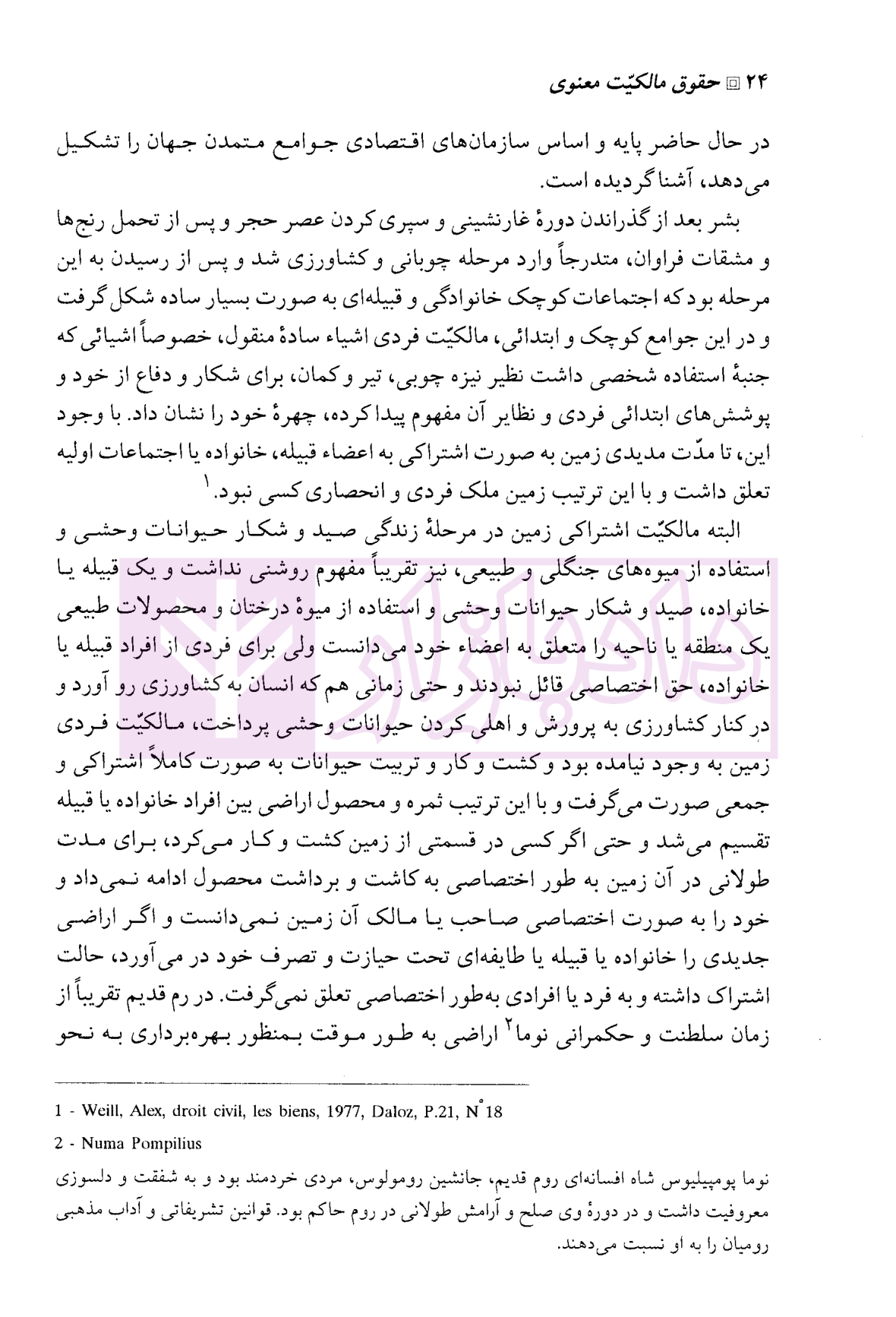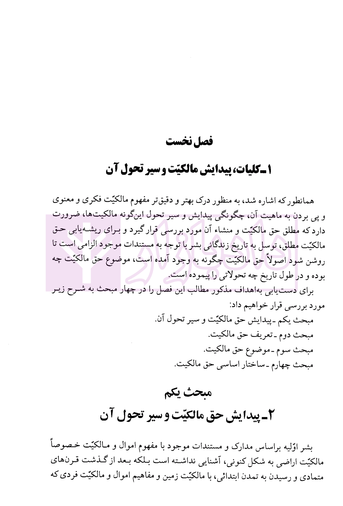 فصل نخست ـ کليات، پيدايش مالکيّت و سير تحول آن