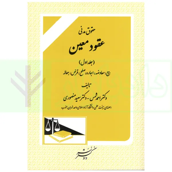 کتاب حقوق مدنی عقود معین (جلد اول) نوشته دکتر احمد شمس و دکتر سعید منصوری شامل مباحث بیع، معاوضه، اجاره، صلح، قرض، جعاله میباشد.