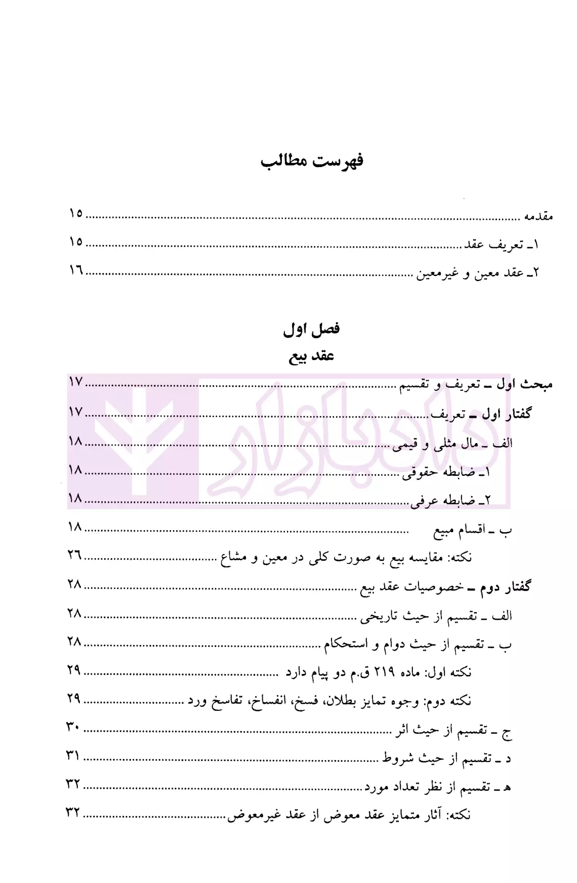 معرفی و فهرست کتاب حقوق مدنی عقود معین (جلد اول) | دکتر شمس و دکتر منصوری