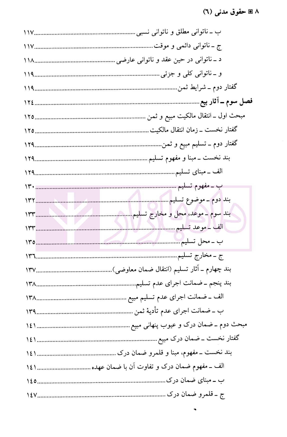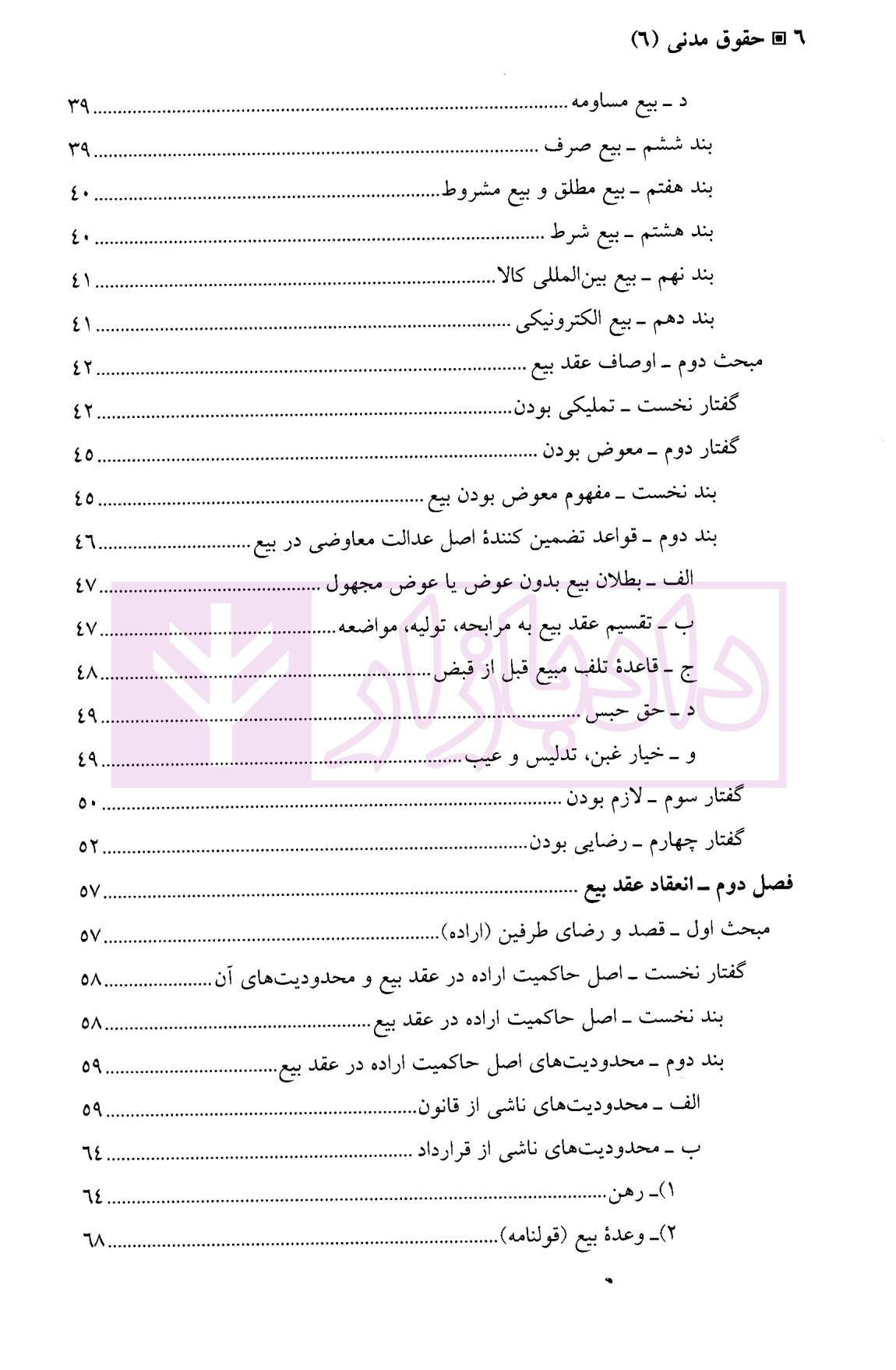مشخصات و ویژگی کتاب حقوق مدنی (6) بیع، اجاره، قرض، جعاله، صلح | دکتر حیاتی