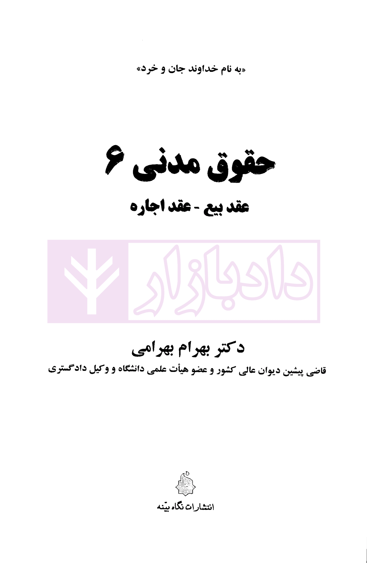 مشخصات و ویژگی کتاب حقوق مدنی (6) عقد بیع – عقد اجاره | دکتر بهرامی