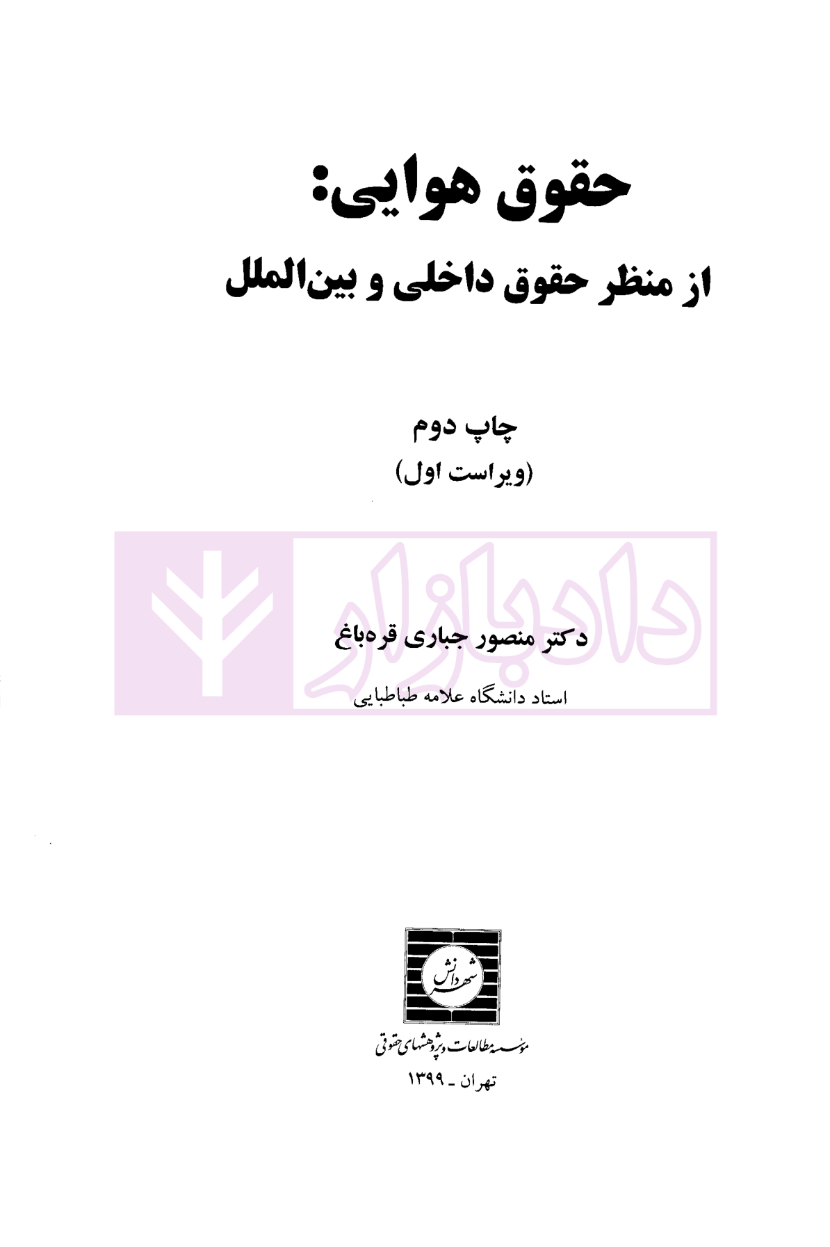 حقوق هوایی نوشته دکتر منصور جباری قرهباغ نشر شهردانش منبع دانشگاهی درس حقوق هوایی به مباحث حقوقی حمل و نقل هوایی و هواپیما از منظر داخلی و بینالملل میپردازد.