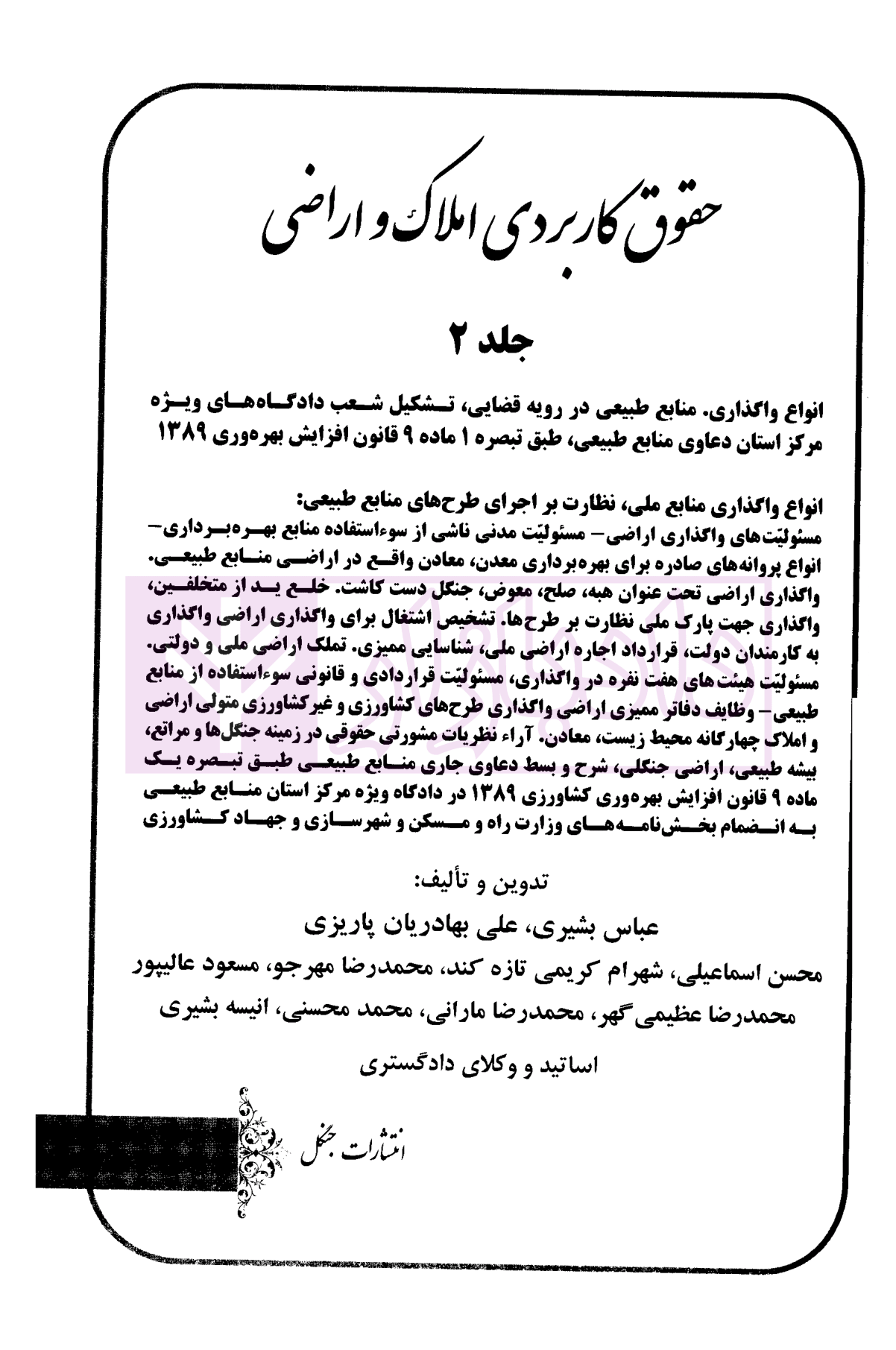 مشخصات و ویژگی کتاب حقوق کاربردی املاک و اراضی (جلد دوم) | بشیری