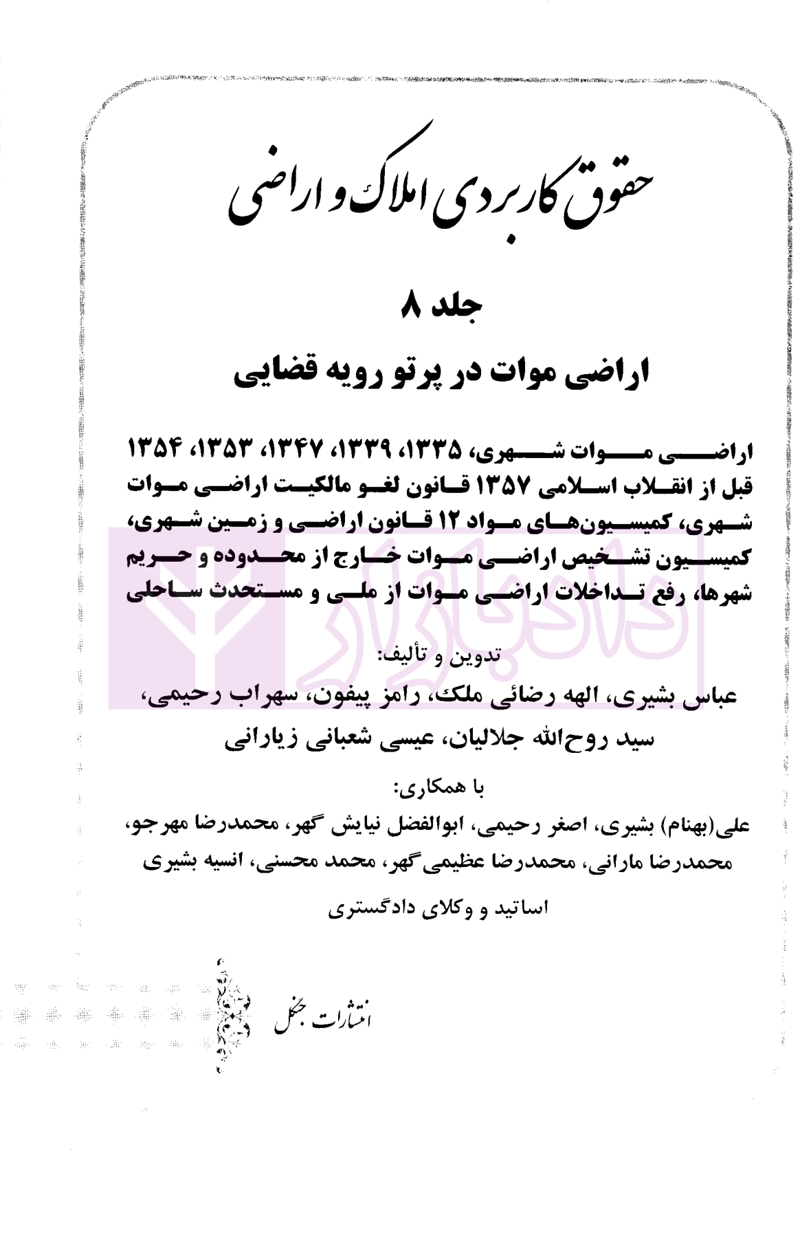 مشخصات و ویژگی کتاب حقوق کاربردی املاک و اراضی (جلد هشتم) | بشیری
