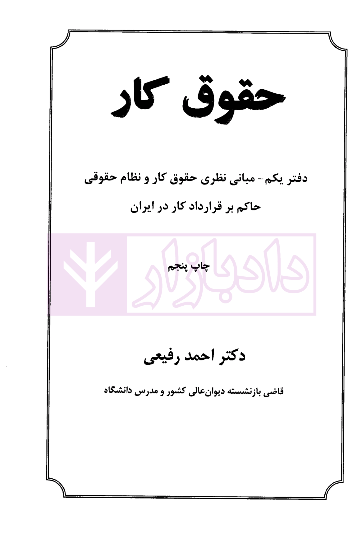 کتاب حقوق کار (دفتر یکم) نوشته دکتر احمد رفیعی به مبحث مبانی نظری حقوق کار و نظام حقوقی حاکم بر قرارداد کار در ایران میپردازد.
