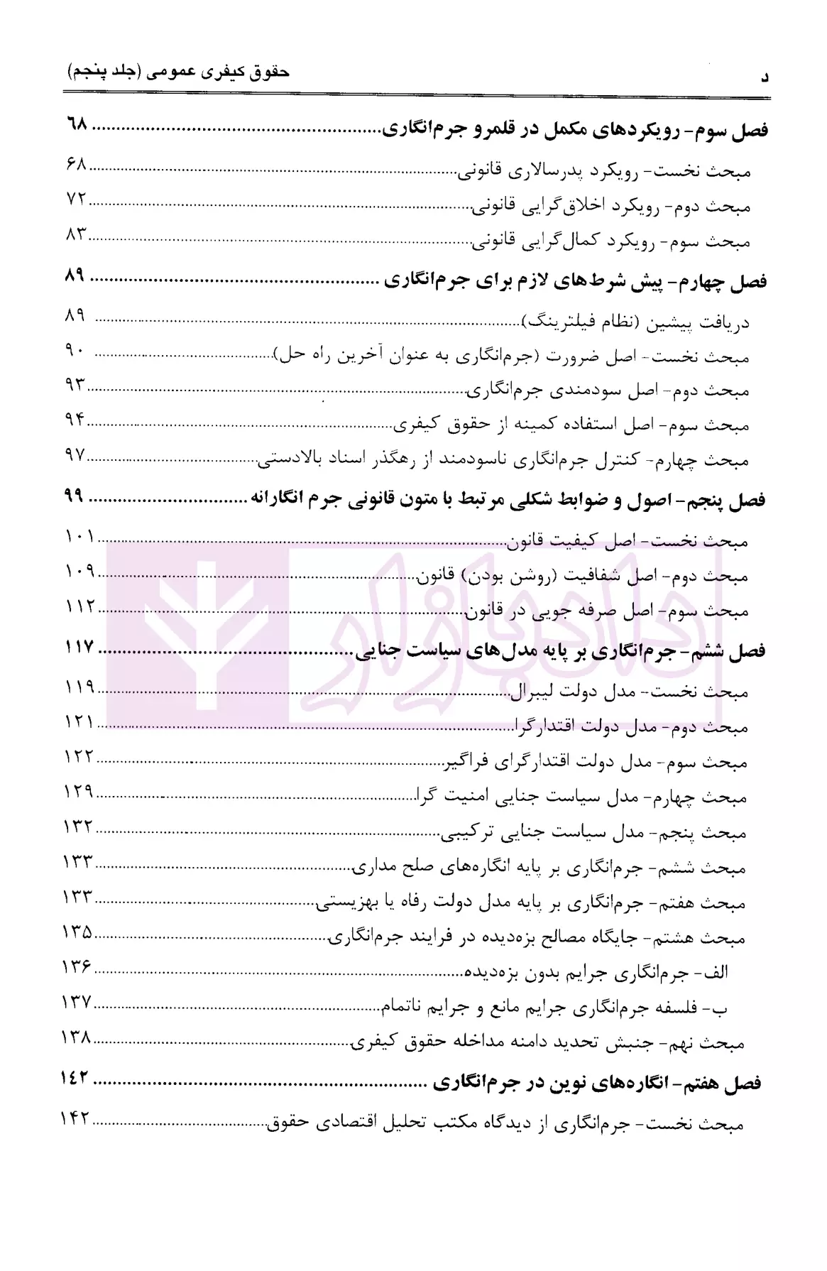 مشخصات و ویژگی کتاب حقوق کیفری عمومی (فلسفه حقوق کیفری) جلد پنجم | دکتر آقایی
