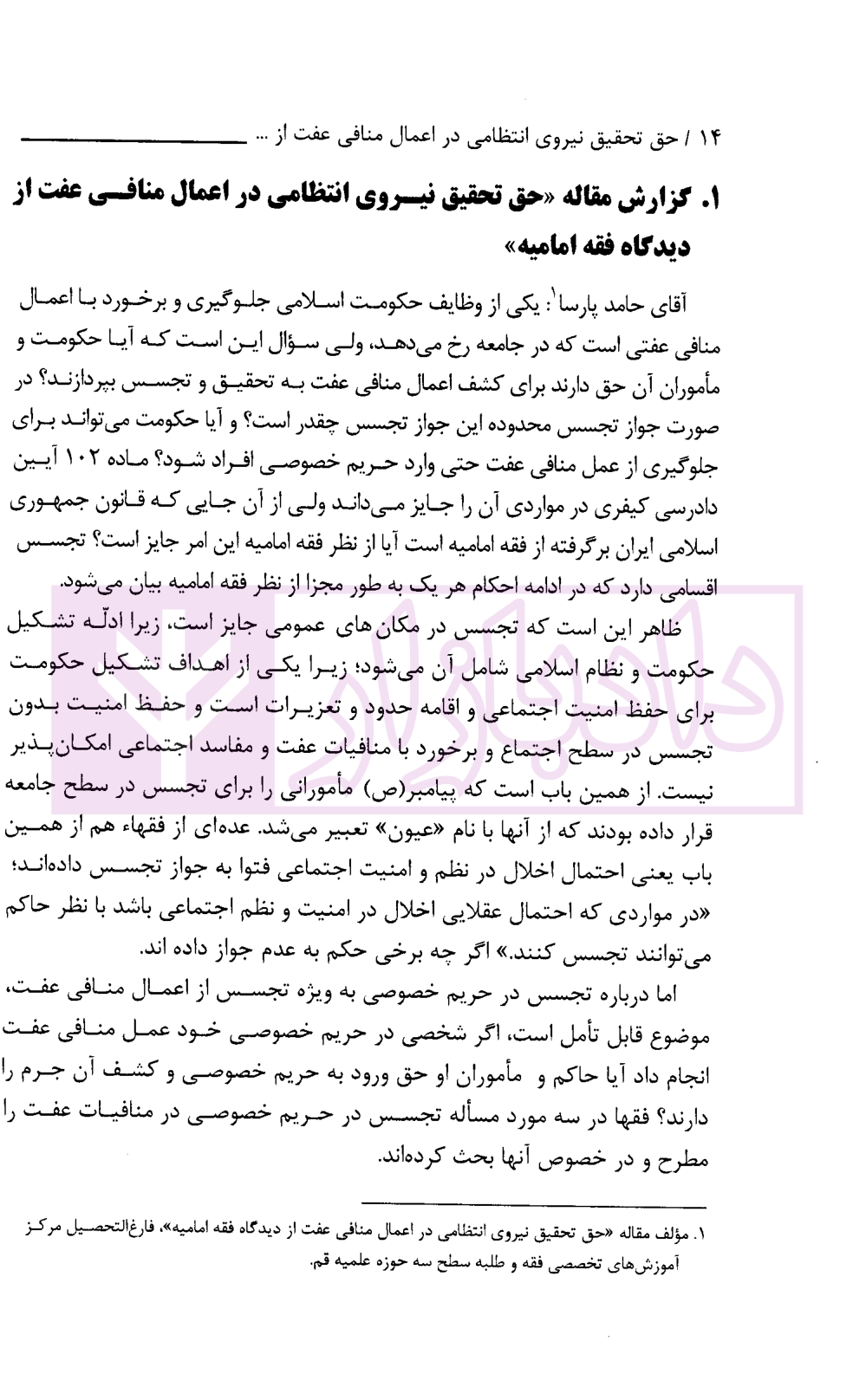 مشخصات و ویژگی کتاب حق تحقیق نیروی انتظامی در اعمال منافی عفت از دیدگاه فقه امامیه | پژوهشگاه قوه قضاییه