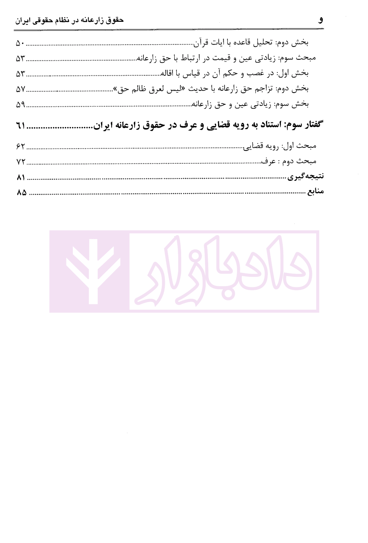 مشخصات و ویژگی کتاب حق زارعانه در نظام حقوقی ایران | رفیعی