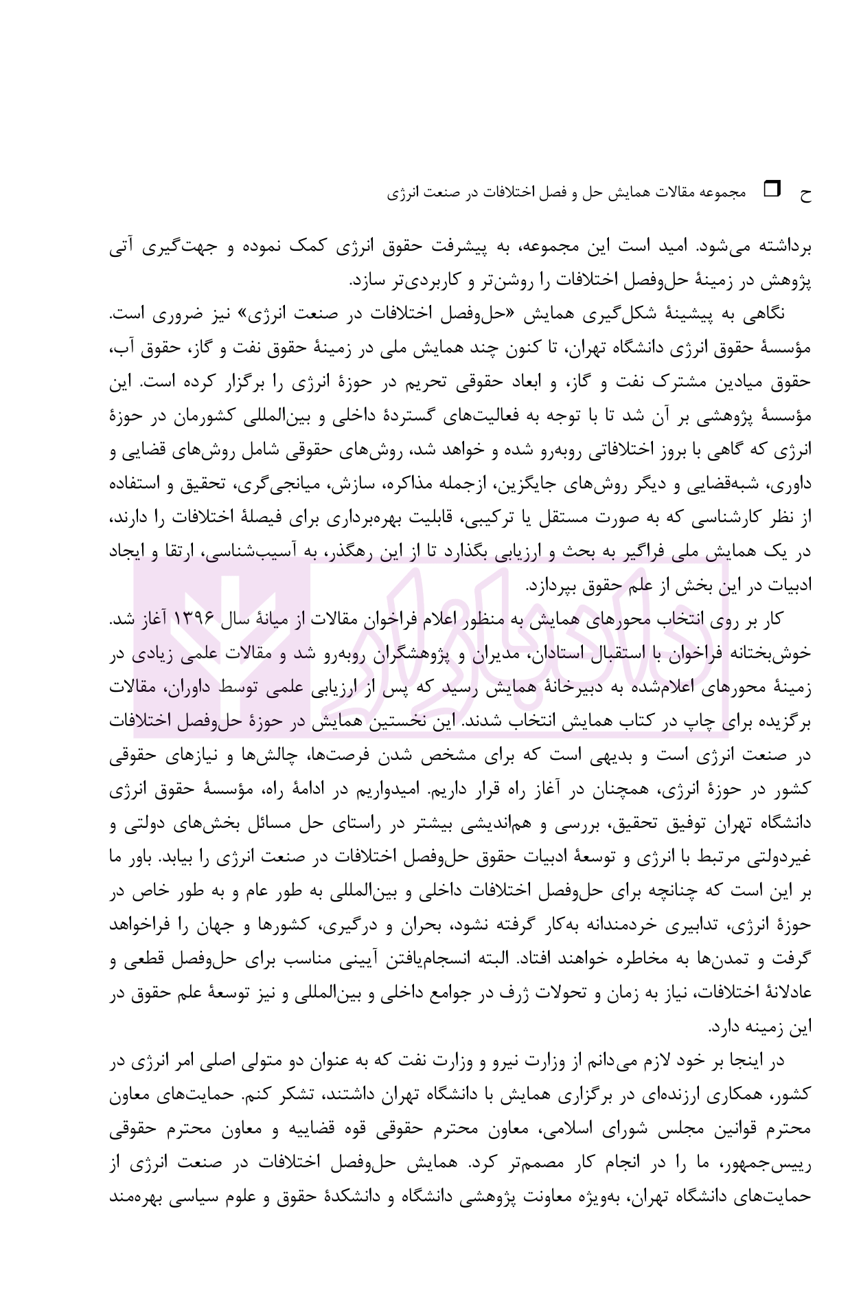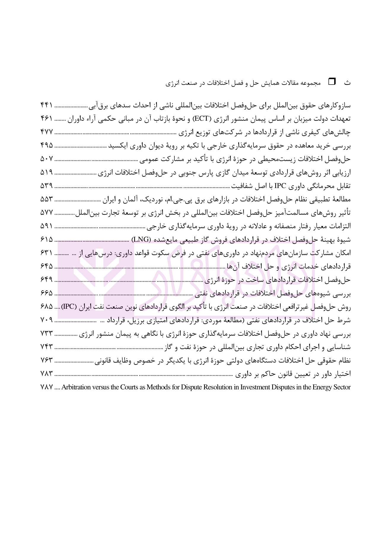 مشخصات و ویژگی کتاب حل و فصل اختلافات در صنعت انرژی (مجموعه مقالات همایش) | دکتر امین زاده