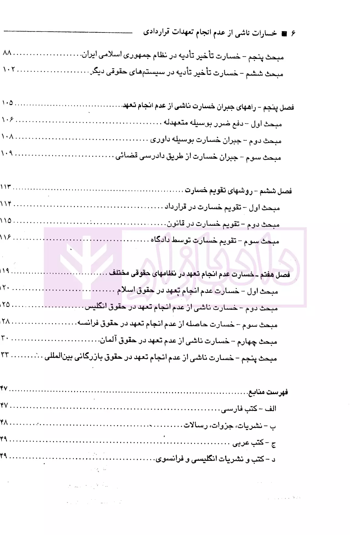 مشخصات و ویژگی کتاب خسارات ناشی از عدم انجام تعهدات قراردادی | دکتر سماواتی