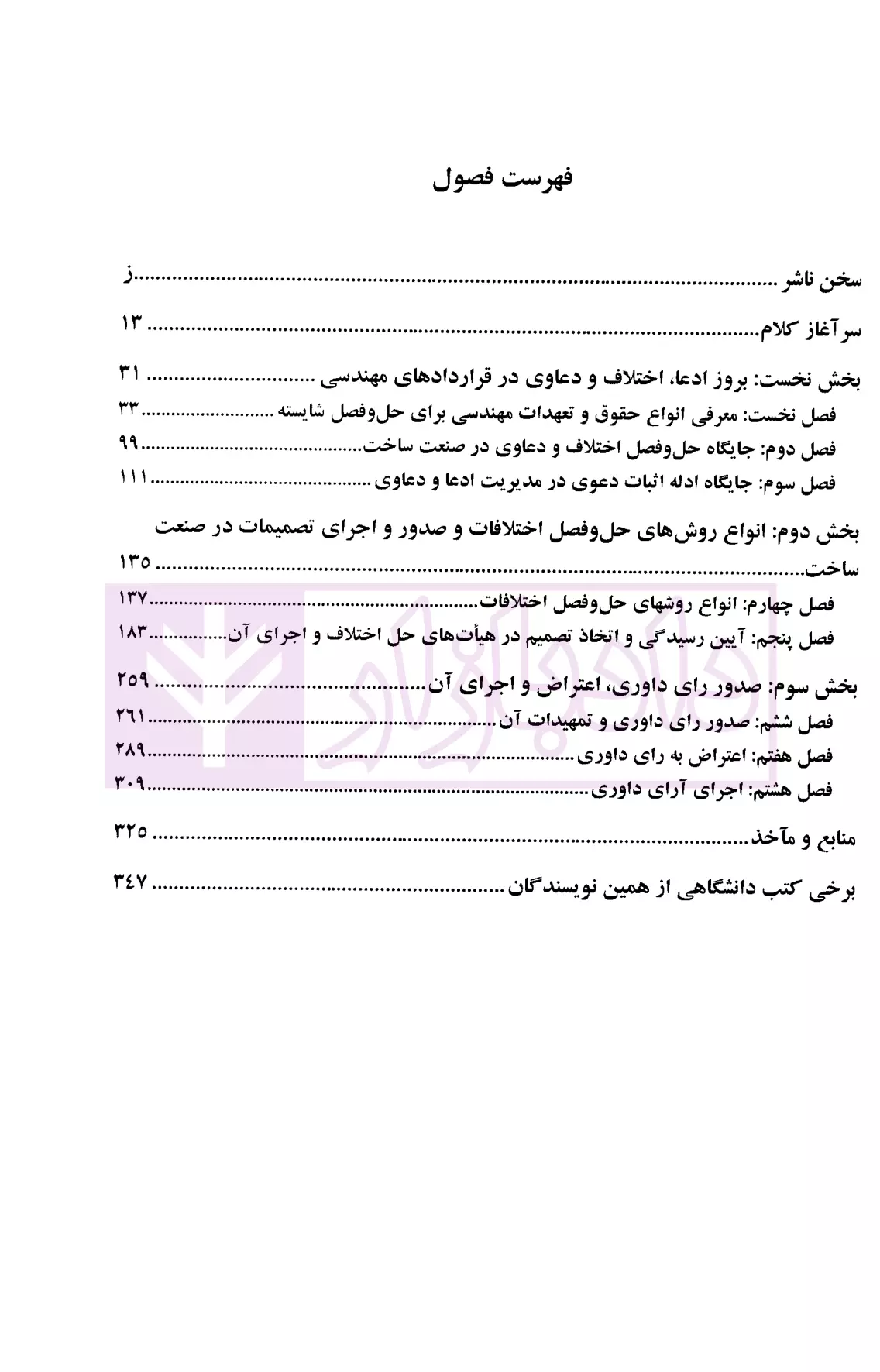مشخصات و ویژگی کتاب داوری و حل اختلاف در صنعت ساخت (اصول و مبانی حل و فصل مسالمت آمیز اختلافات-کتاب سوم) | دکتر داراب پور