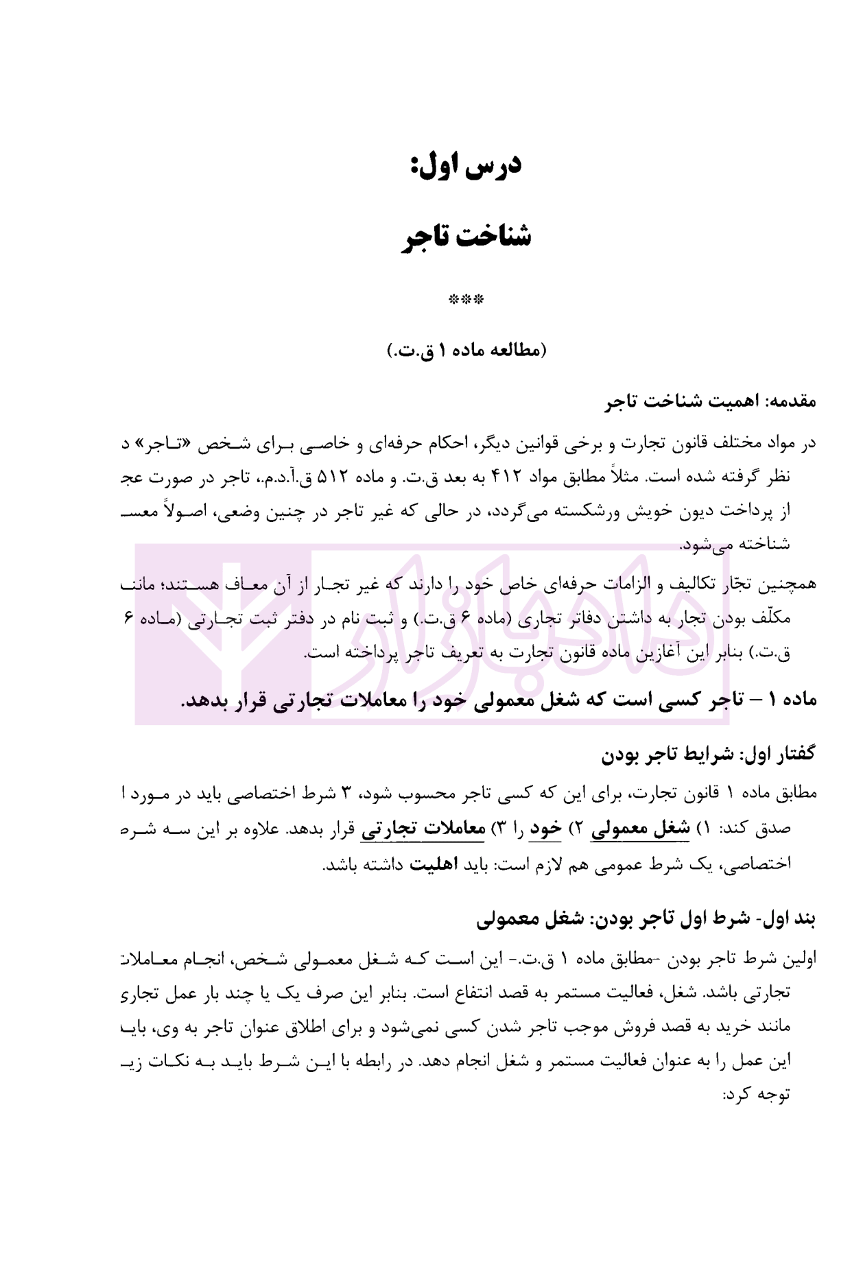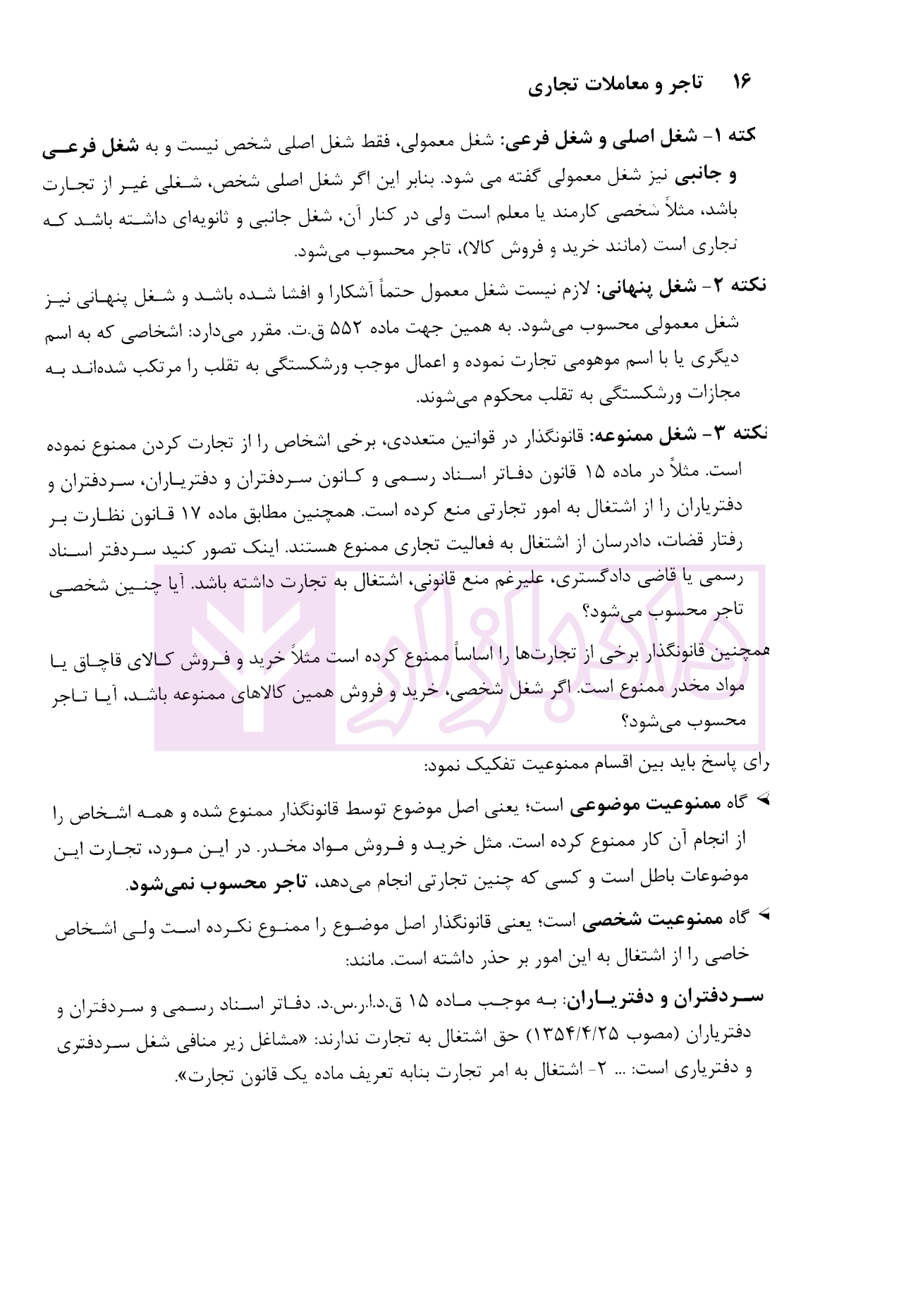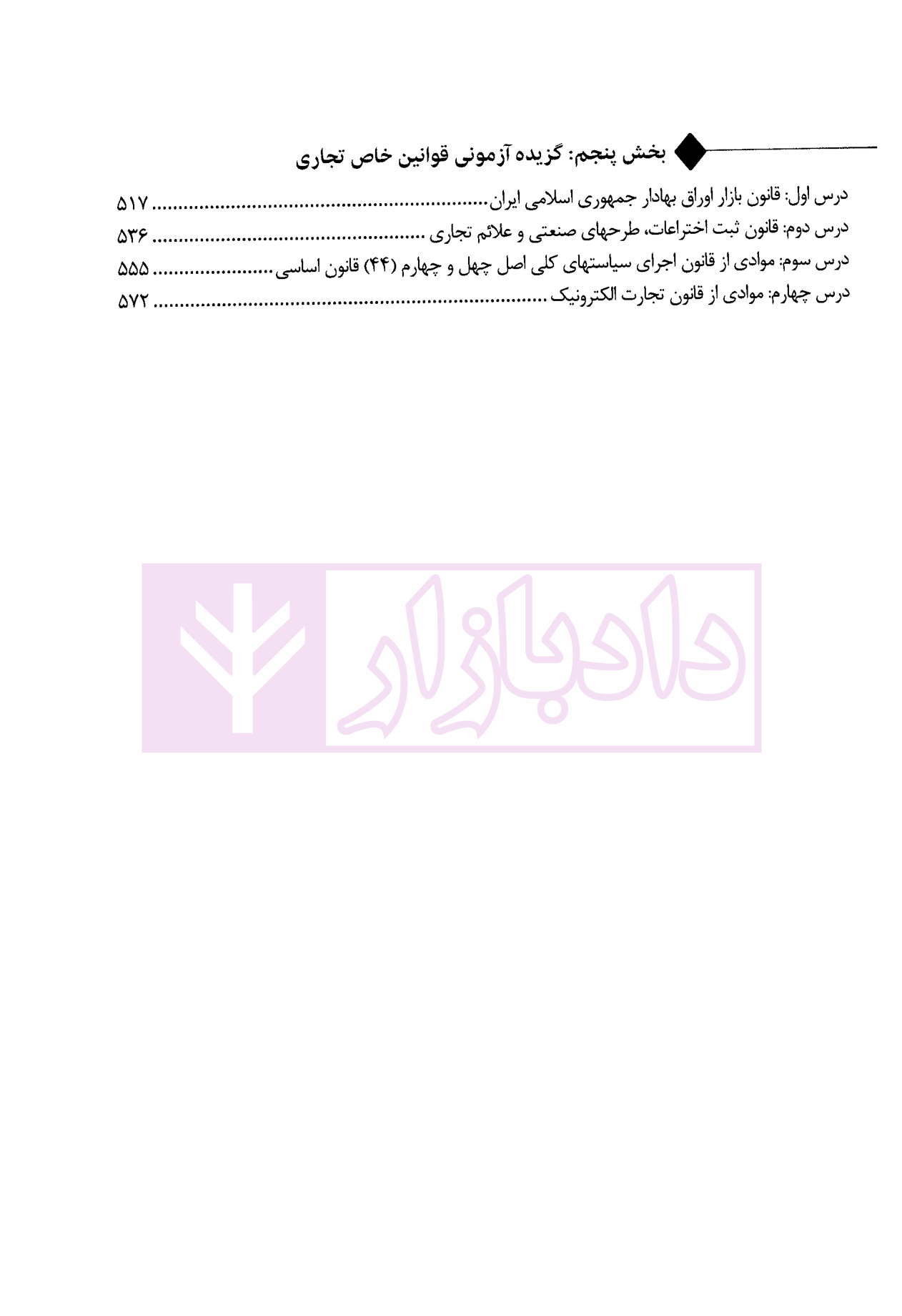 • مشتمل بر گزیده آزمونی قوانین خاص کاربردی حقوق تجارت