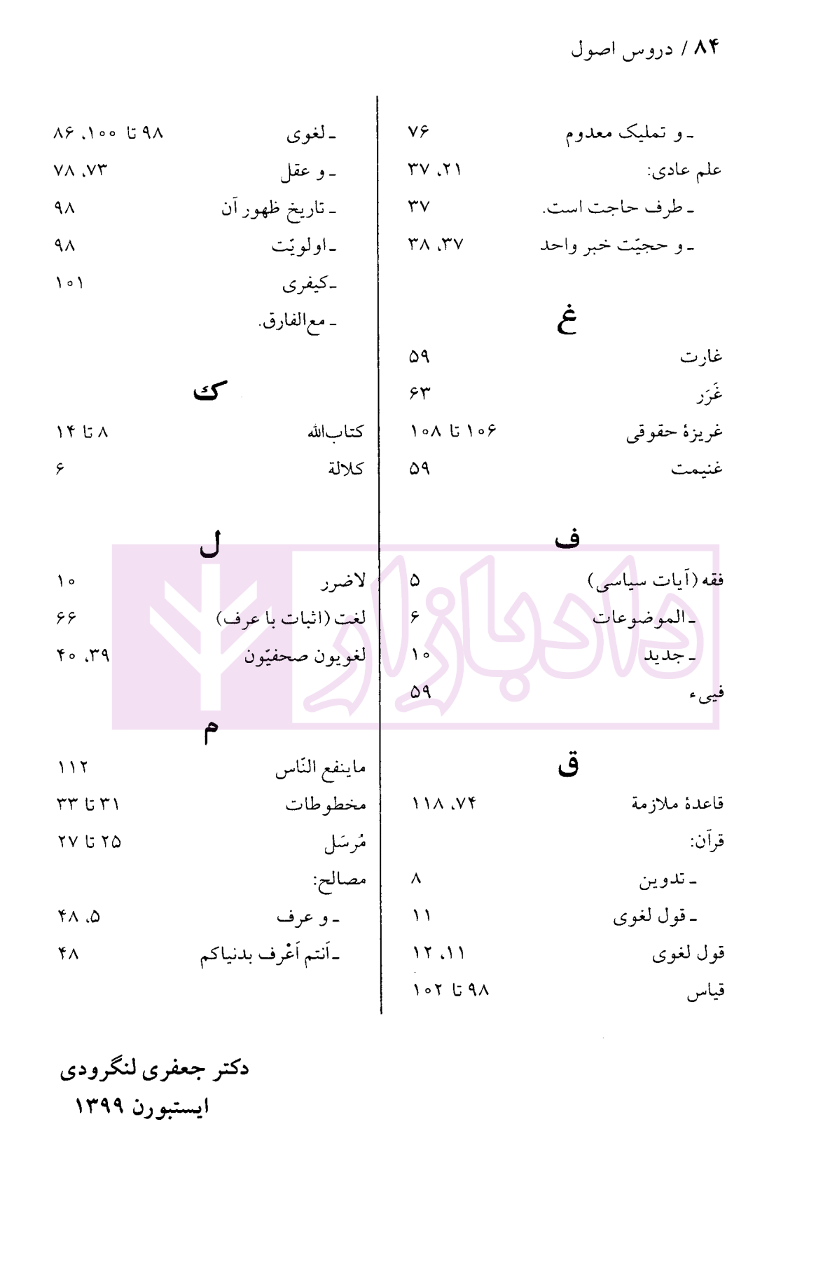 مشخصات و ویژگی کتاب دروس اصول | دکتر لنگرودی