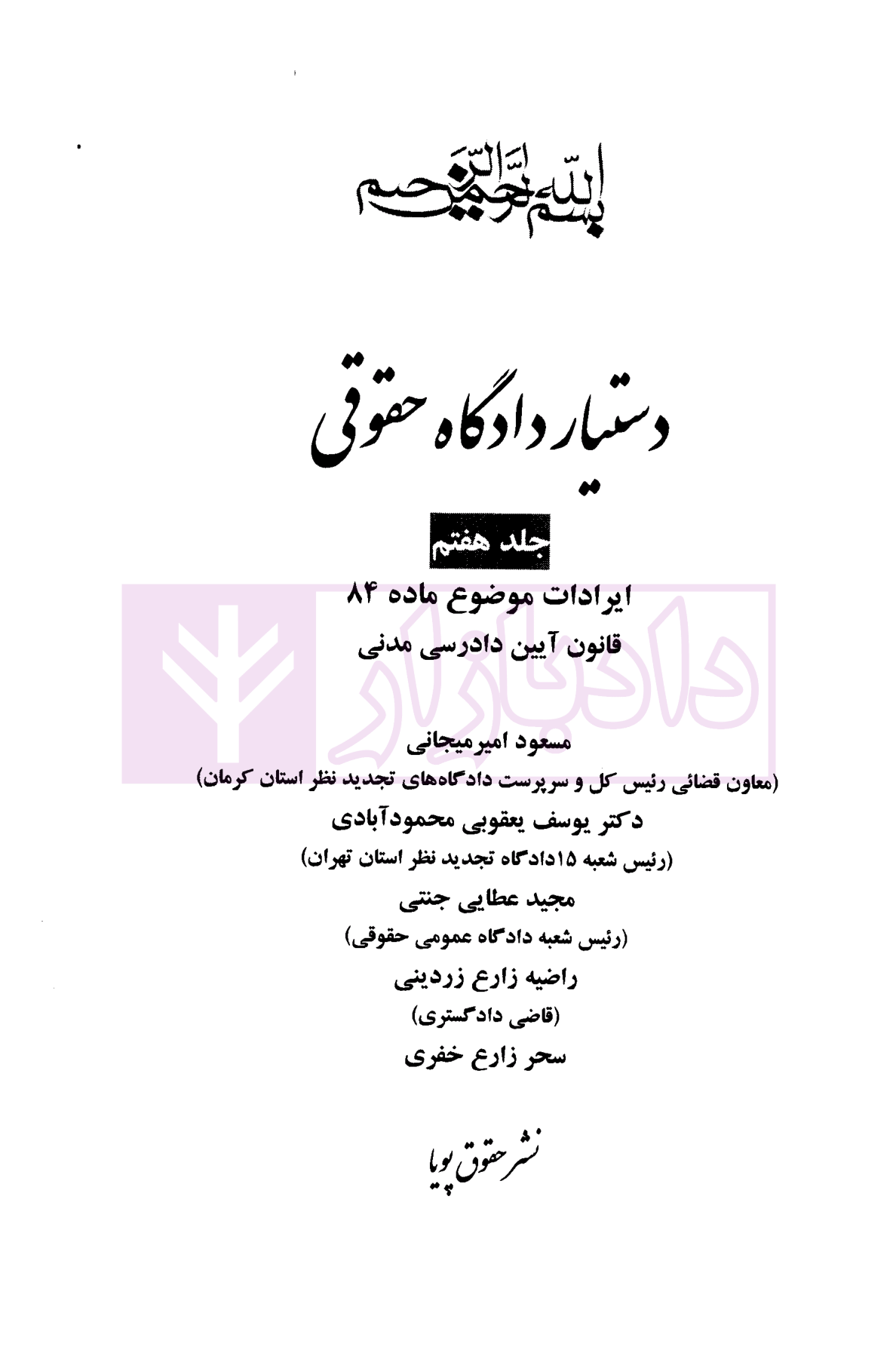 مشخصات و ویژگی کتاب دستیار دادگاه حقوقی – جلدهفتم (ایرادات موضوع ماده 84) | عطایی جنتی