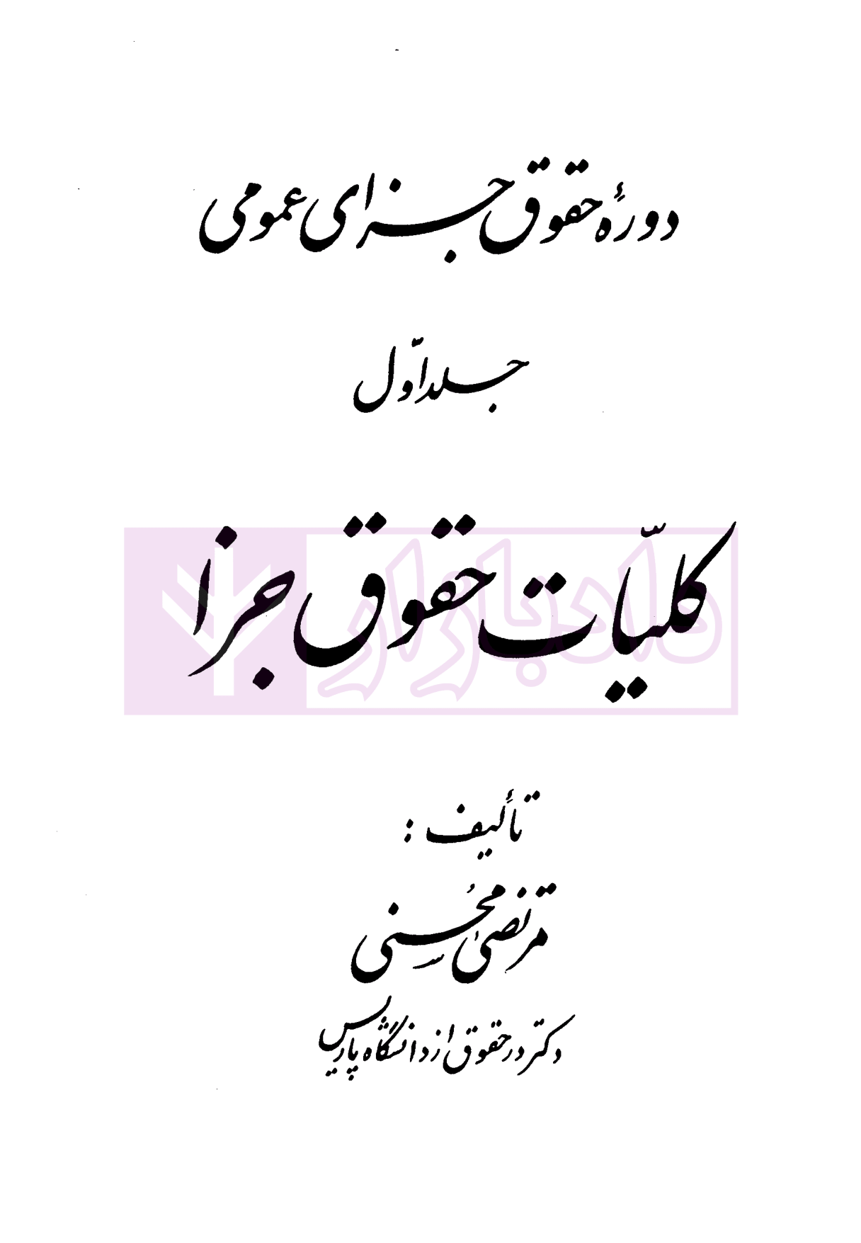 دوره حقوق جزای عمومی کلیات حقوق جزا - جلد اول | دکتر محسنی