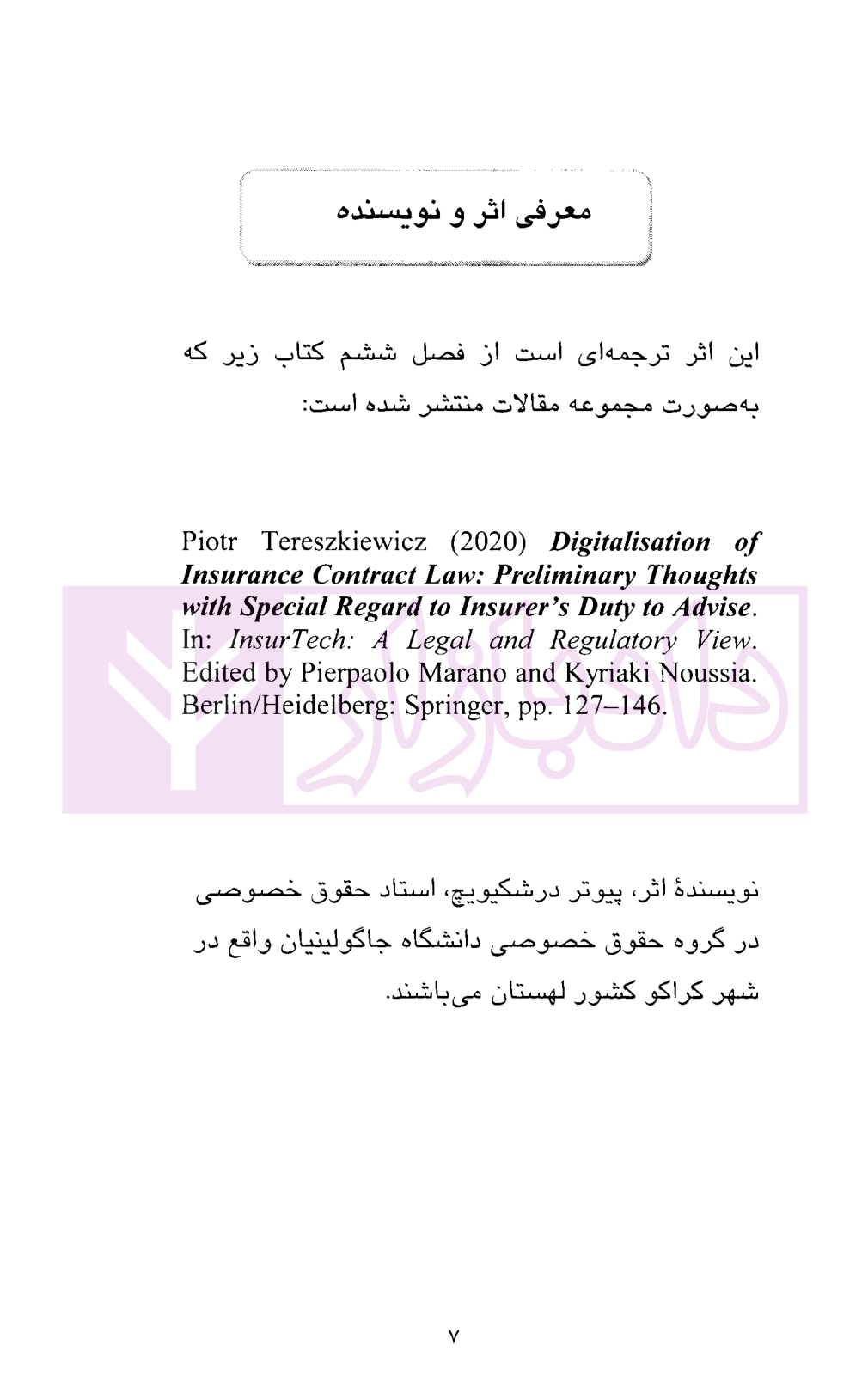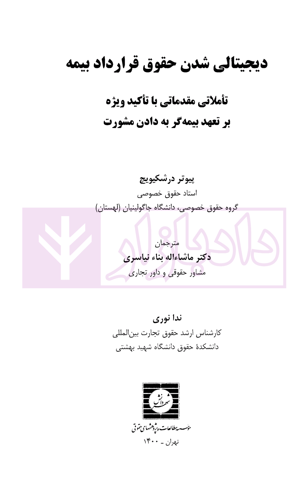 مشخصات و ویژگی کتاب دیجیتالی شدن حقوق قرارداد بیمه | پیوتر درشکیویچ و دکتر بنا نیاسری