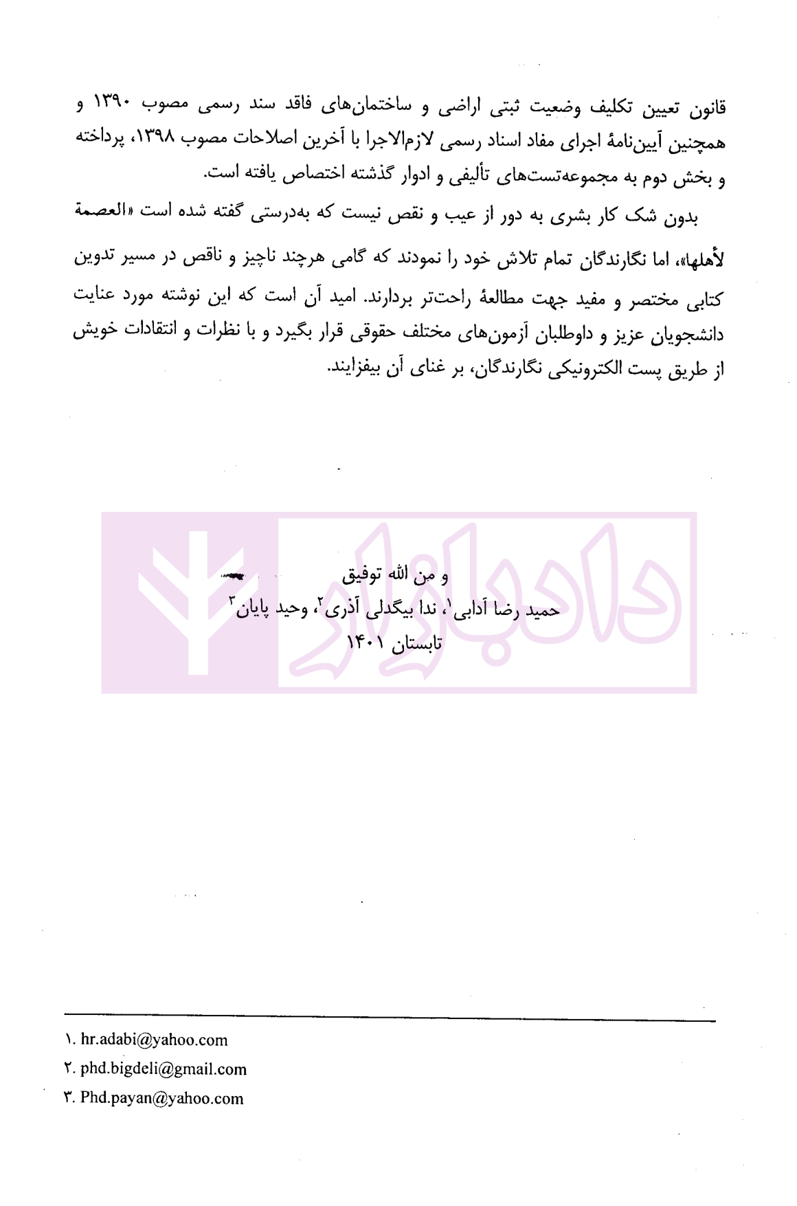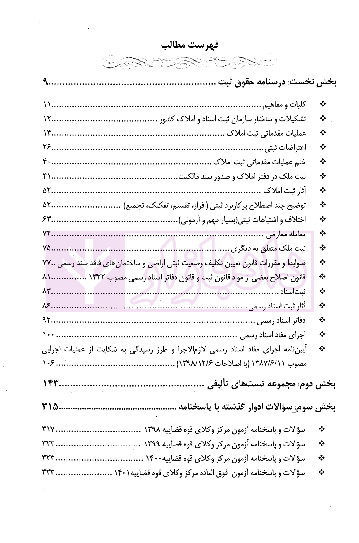 مشخصات و ویژگی کتاب دیوان حقوق ثبت | آدابی و پایان