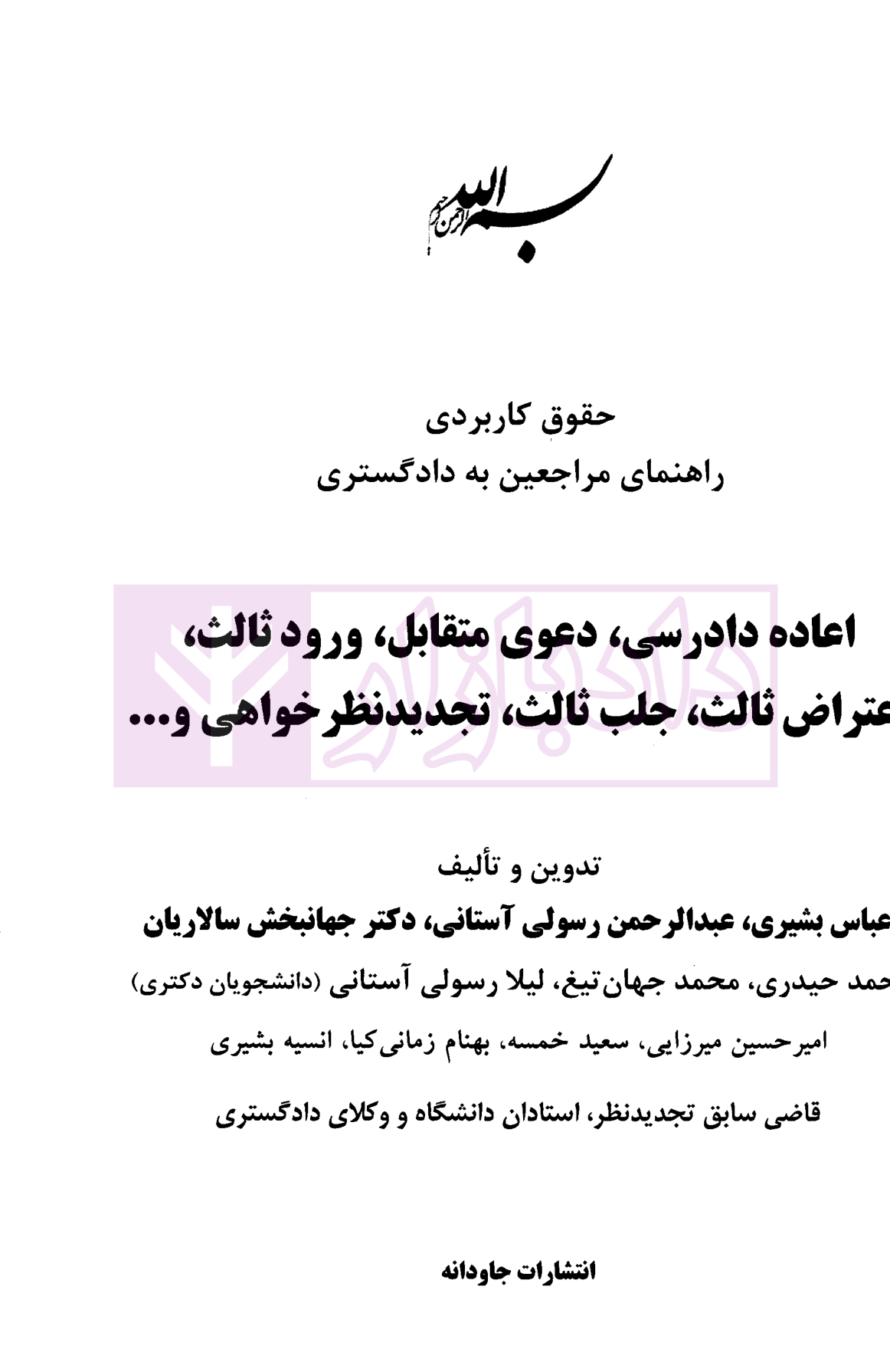 مشخصات و ویژگی کتاب حقوق کاربردی راهنمای مراجعین به دادگستری (اعاده دادرسی…) | بشیری