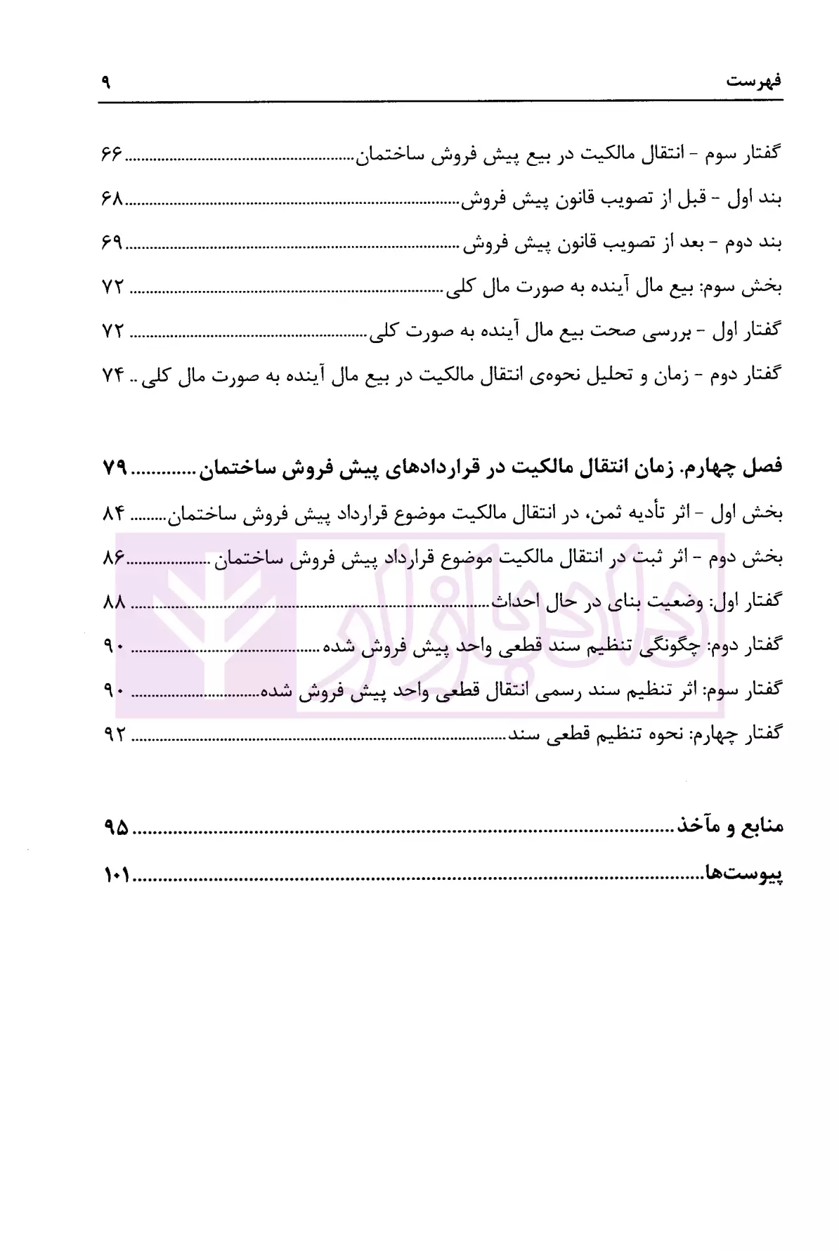 مشخصات و ویژگی کتاب زمان انتقال مالکیت در قرارداد های پیش فروش ساختمان | صحرائی