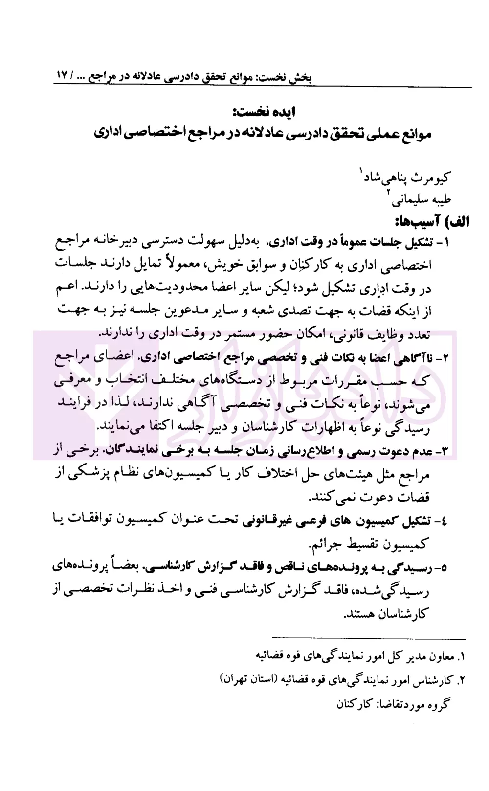 آیین دادرسی مدنی ساماندهی مراجع شبه قضائی | پژوهشگاه قوه قضاییه شناسه محصول: 77258 ناموجود متاسفانه این کالا در حال حاضر موجود نیست. میتوانید از طریق لیست بالای صفحه، از محصولات مشابه این کالا دیدن نمایید. موجود شد به من اطلاع بده ناموجود افزودن به علاقمندی اشتراک گذاری مقایسه بازخورد درباره این کالا