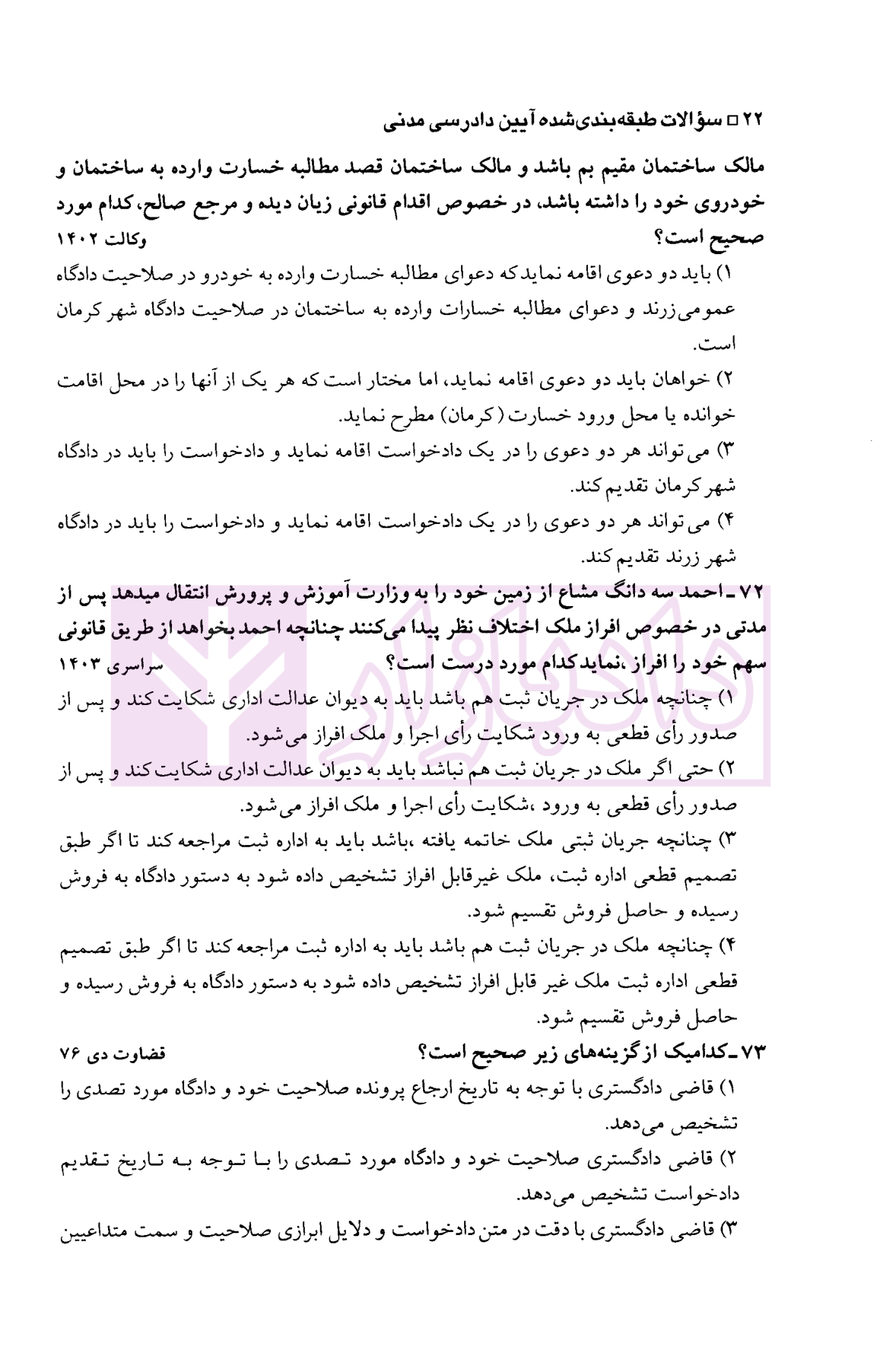 امتیاز و دیدگاه کاربران مجموعه سوالات طبقه بندی شده موضوعی آیین دادرسی مدنی | اردکانی و زیبایی