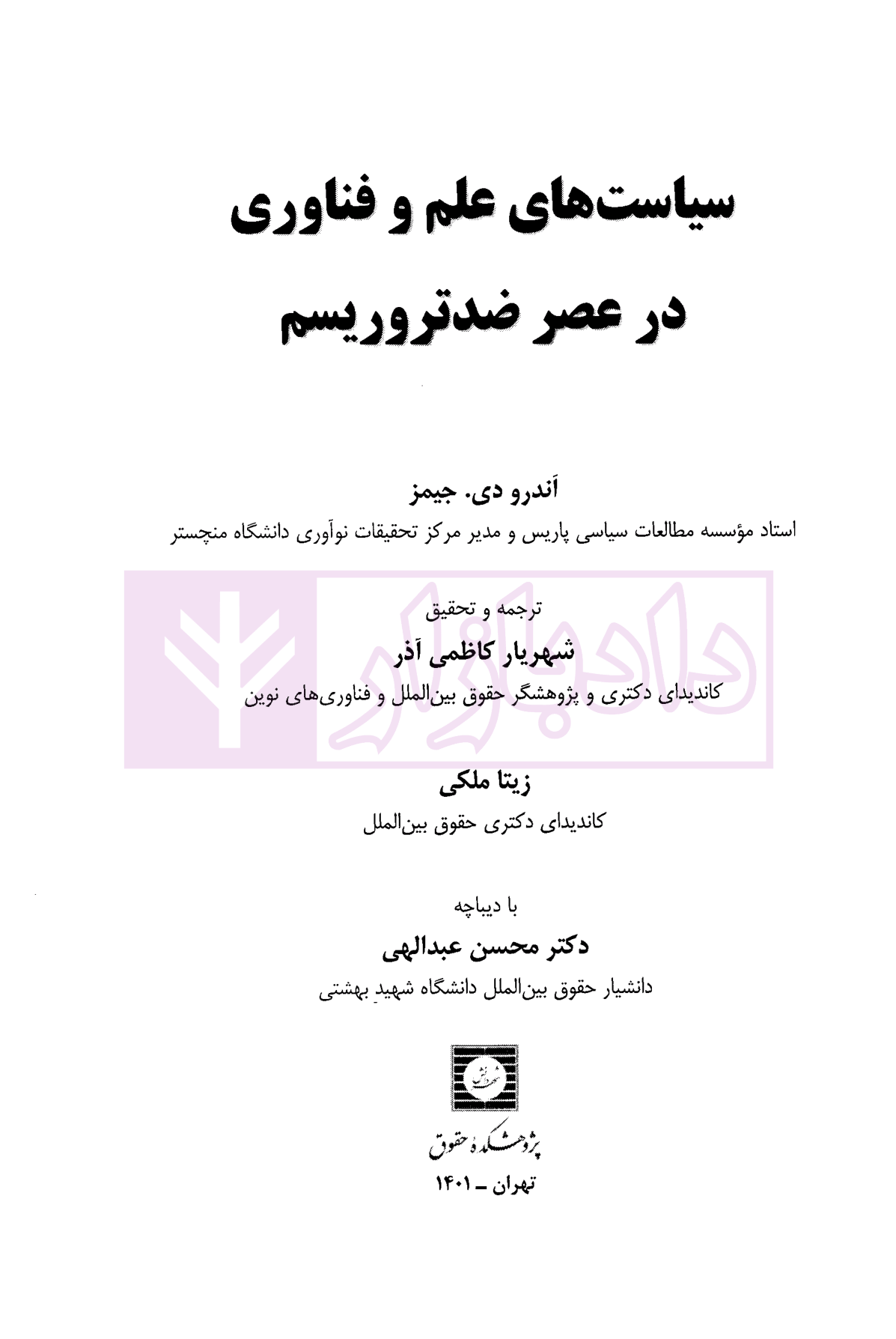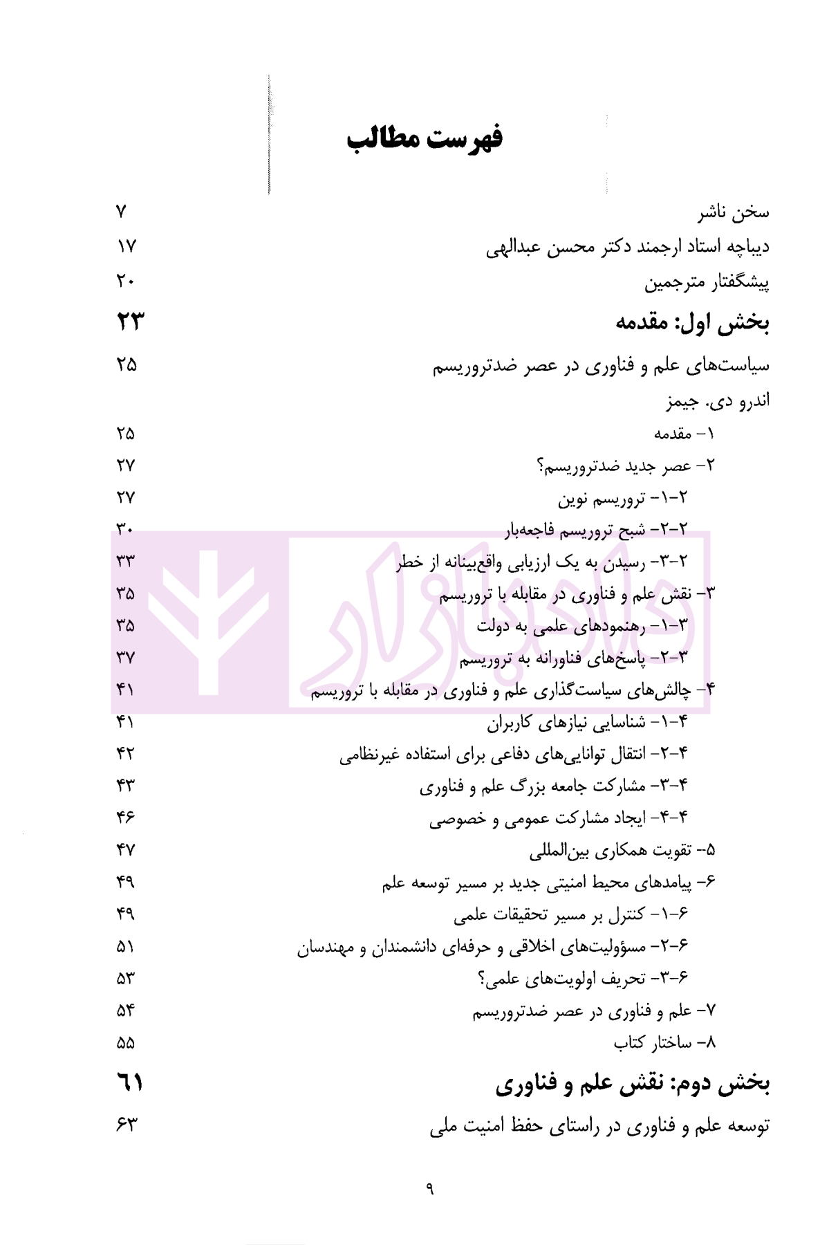 مشخصات و ویژگی کتاب سیاست های علم و فناوری در عصر ضد تروریسم | کاظمی آذر