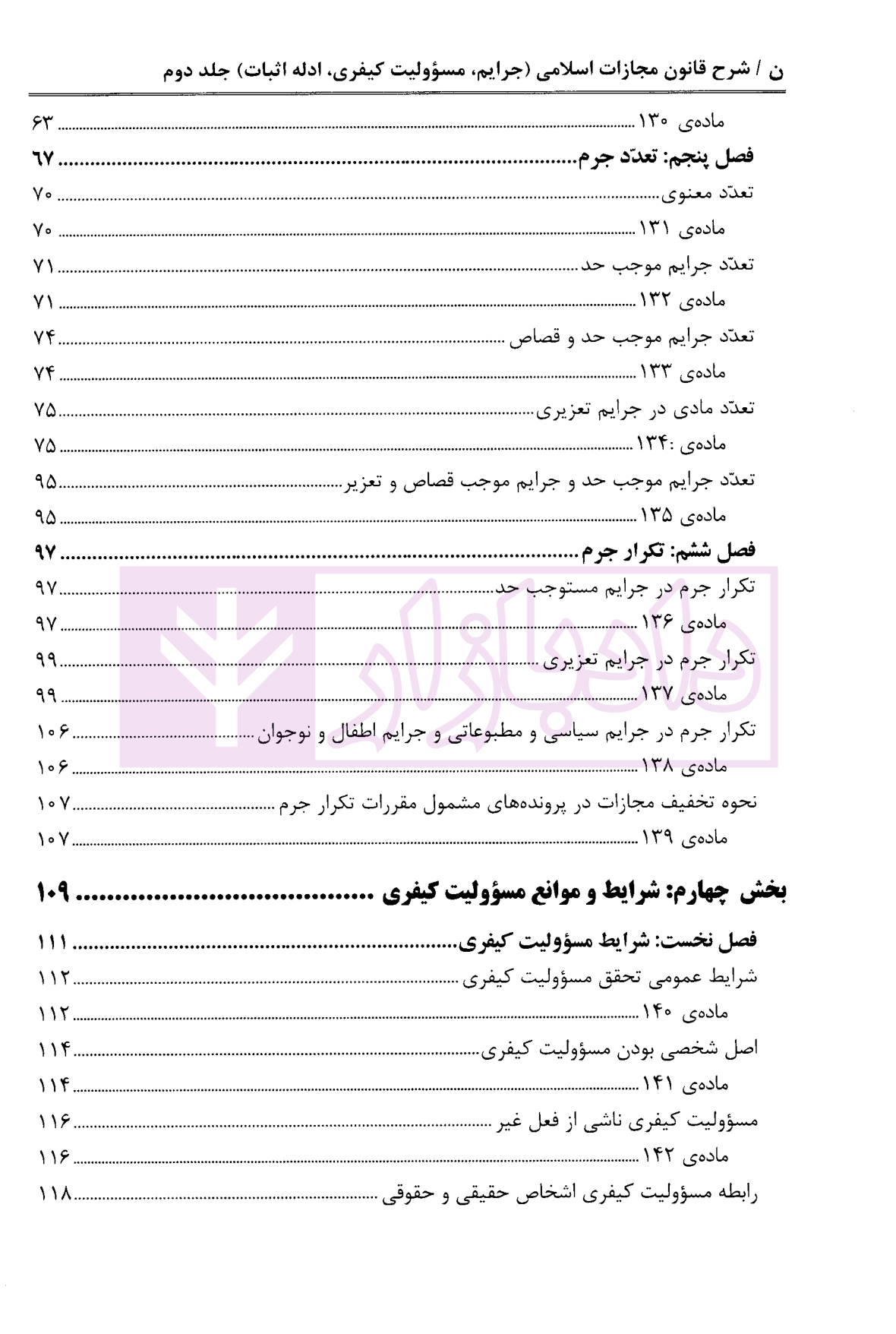 عناوین اصلی شرح قانون مجازات جلد دوم دکتر مصدق