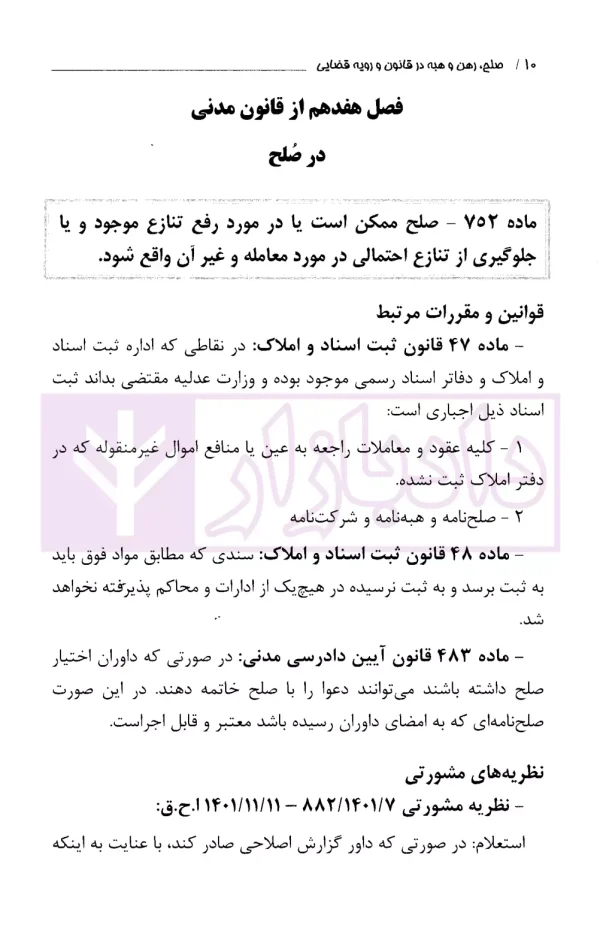 امتیاز و دیدگاه کاربران صلح رهن و هبه در قانون و رویه قضایی | دادگستری تهران