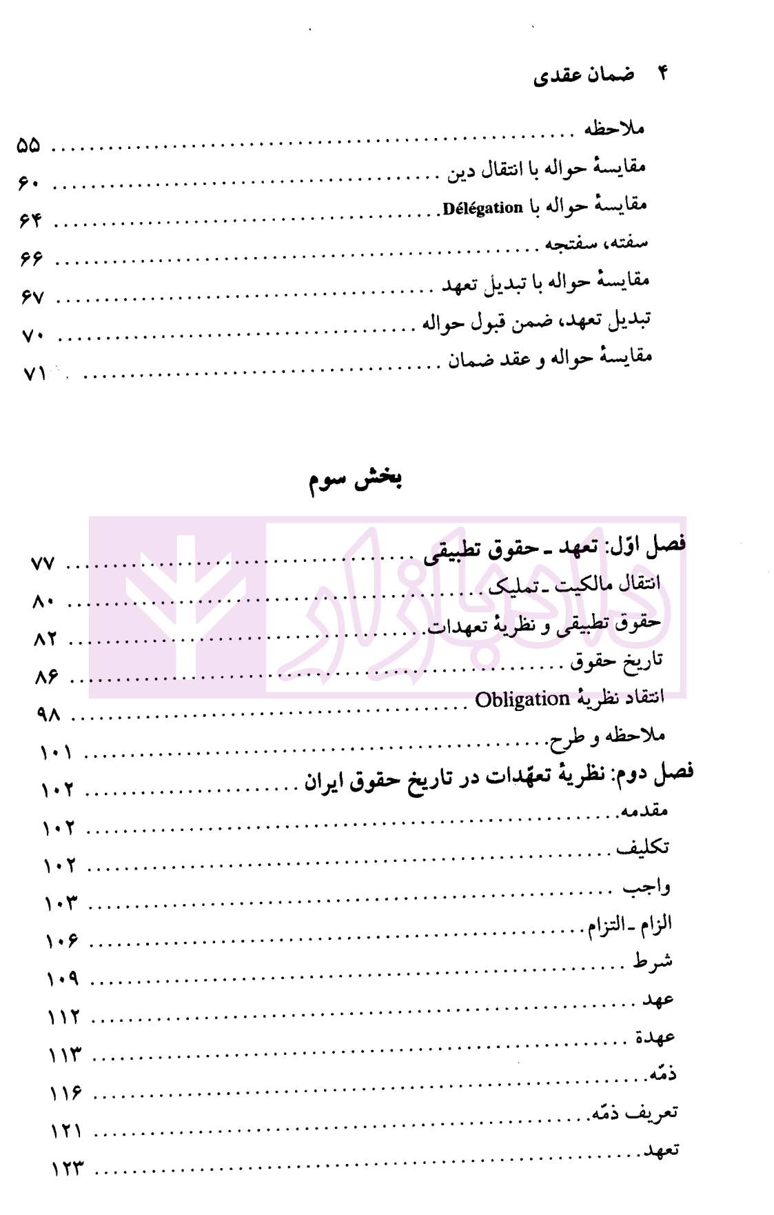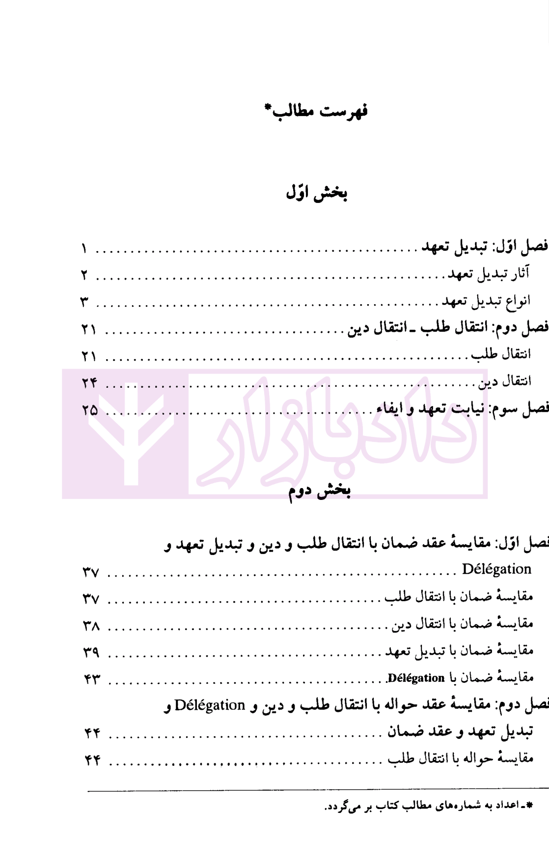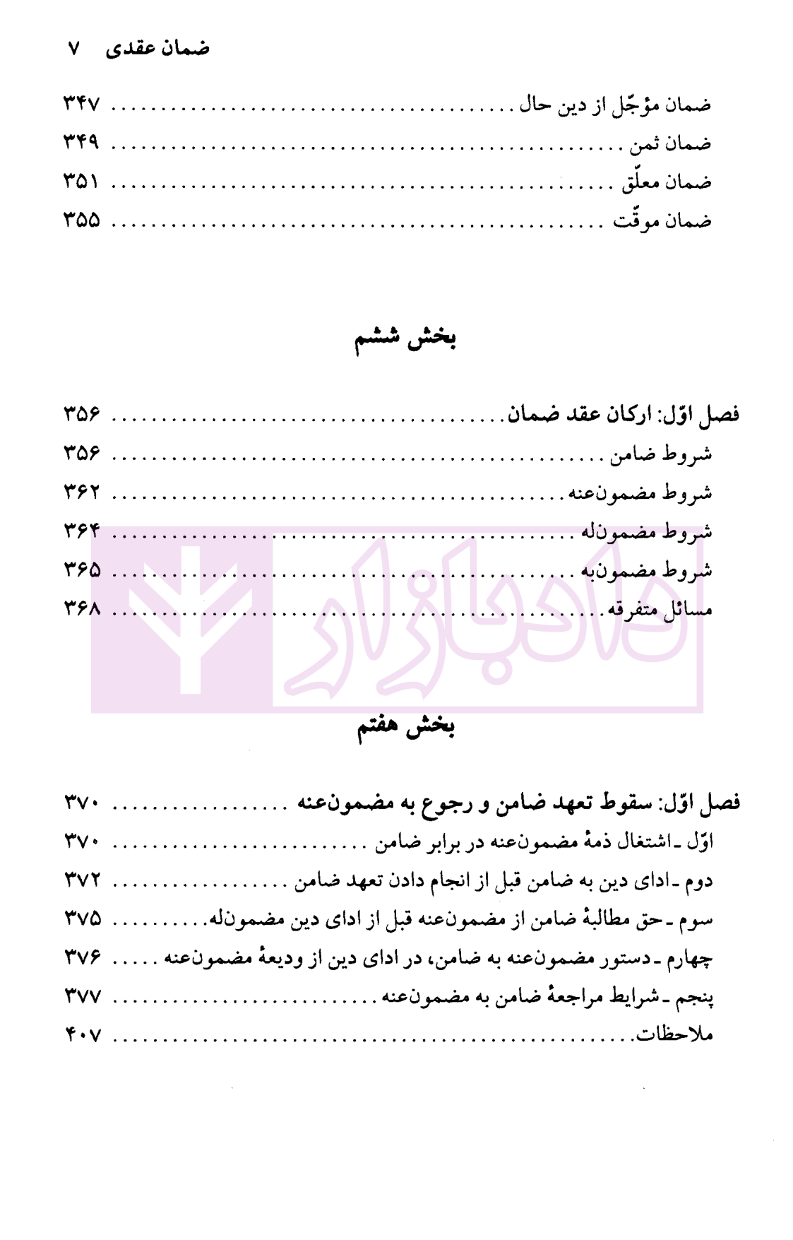 عناوین کتاب ضمان عقدی در حقوق مدنی اثر دکتر محمدجعفر جعفری لنگرودی: