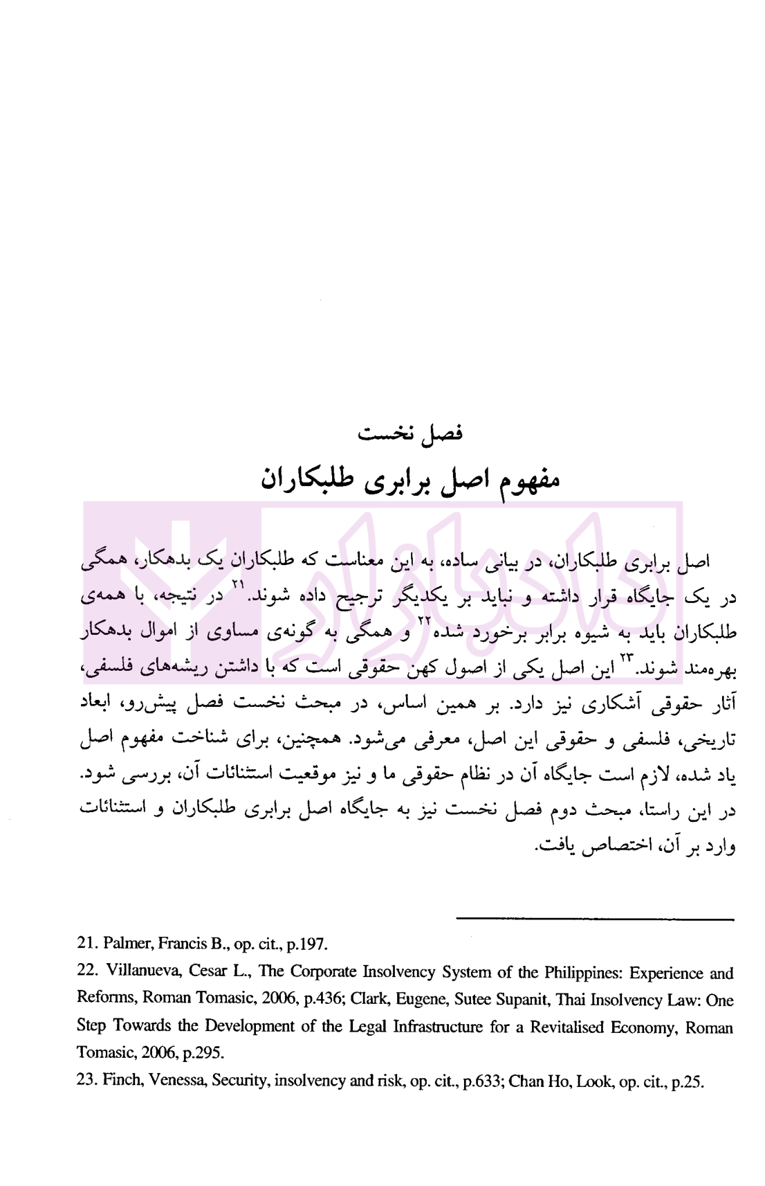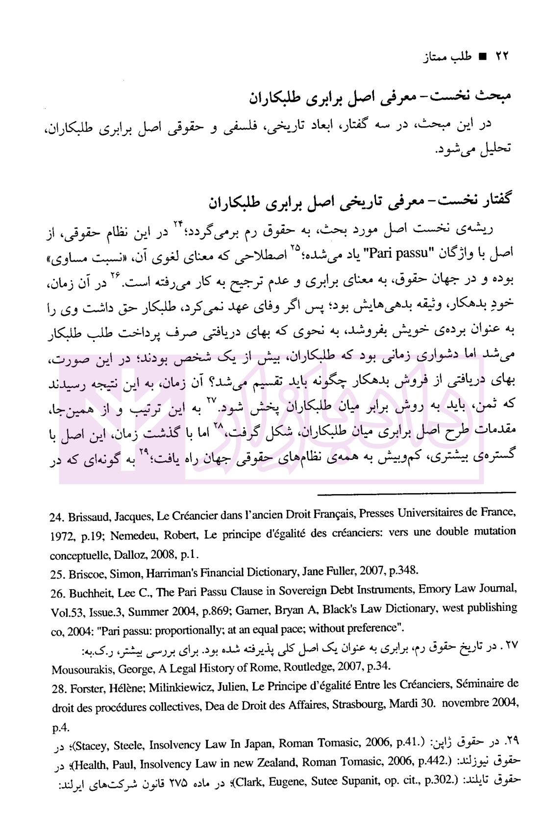 - منبع و مبنای اصل برابری طلبکاران