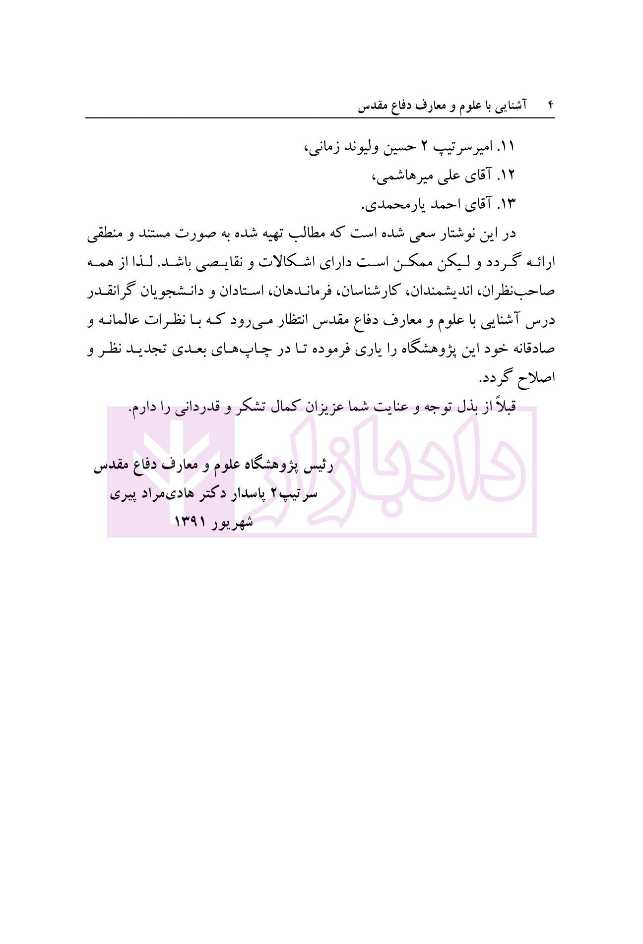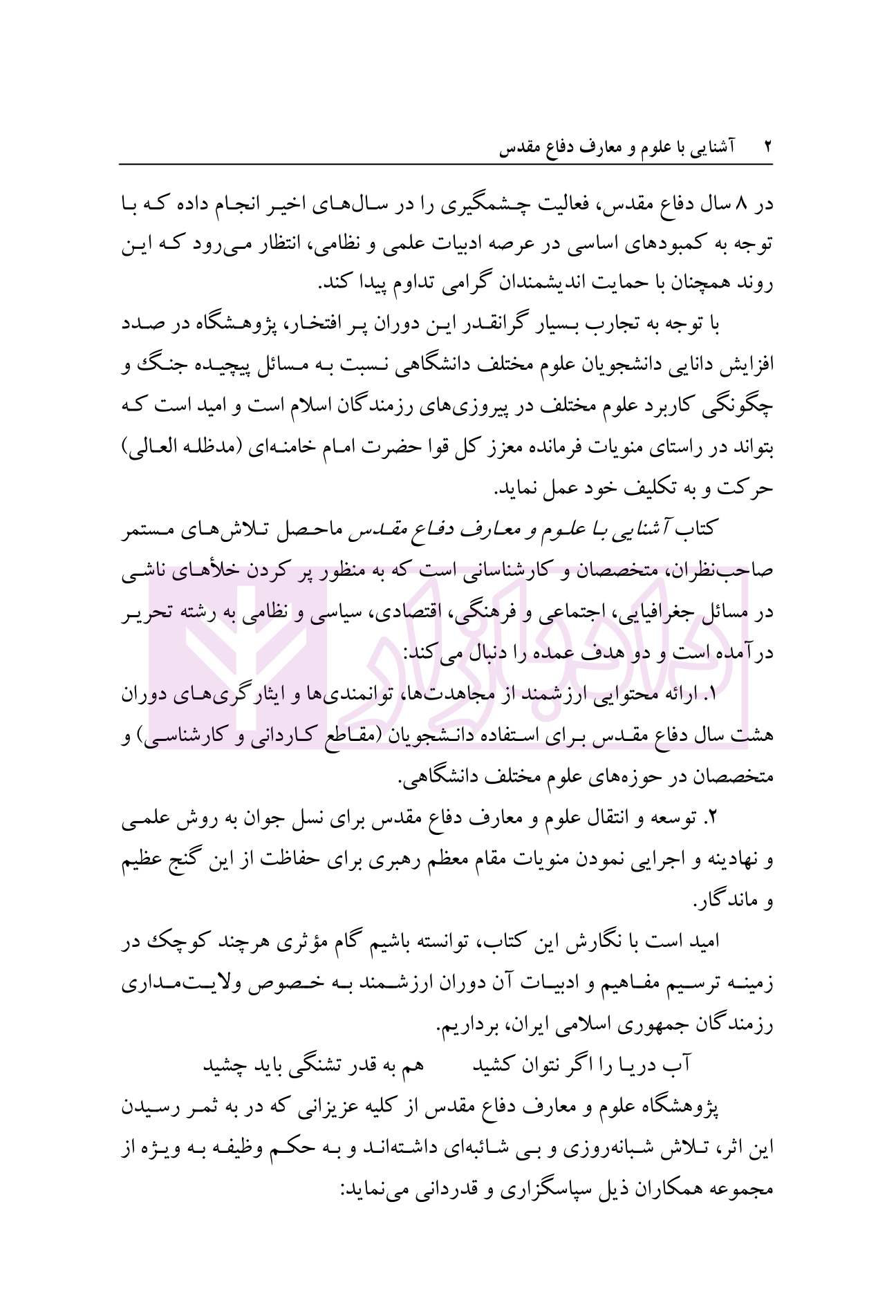مشخصات و ویژگی کتاب آشنایی با علوم و معارف دفاع مقدس | دکتر شربتی و دکتر مراد پیری