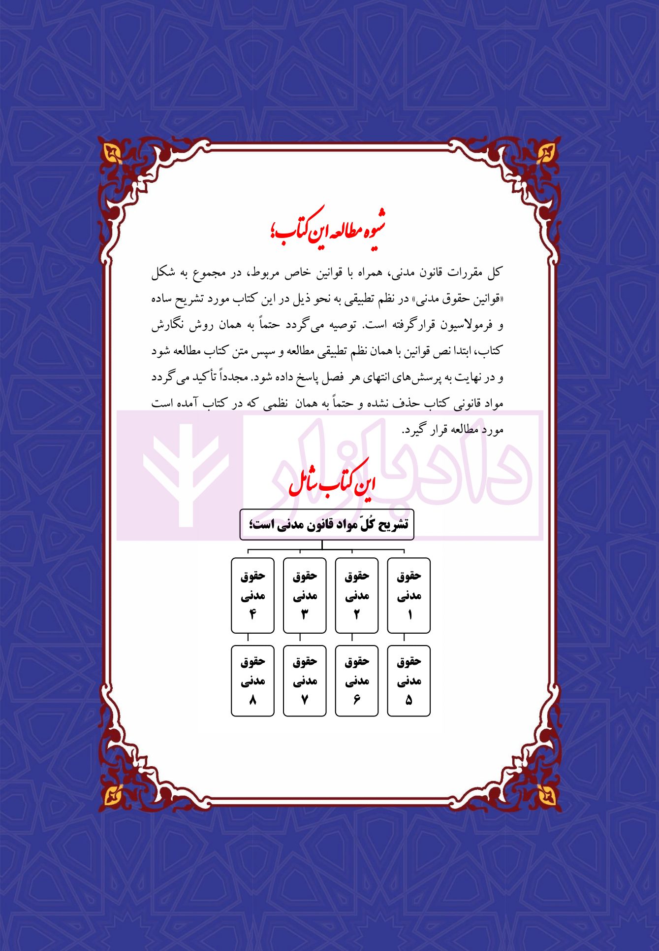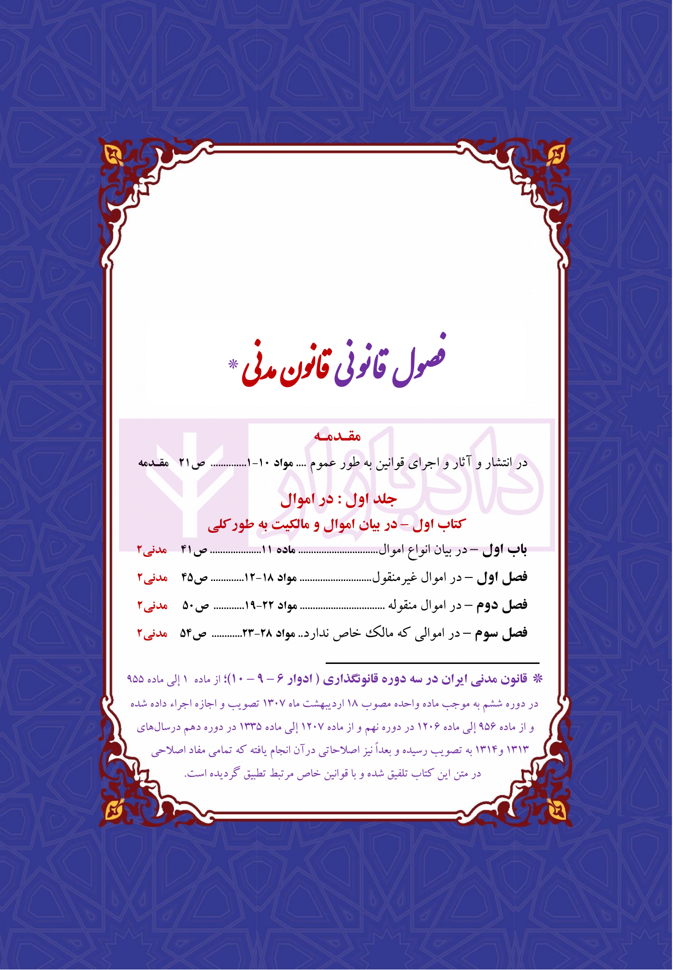 - بررسی ماده به ماده قانون مدنی به بیانی ساده و در تطبیق با تمام قوانین خاص و مقررات مدنی مرتبط