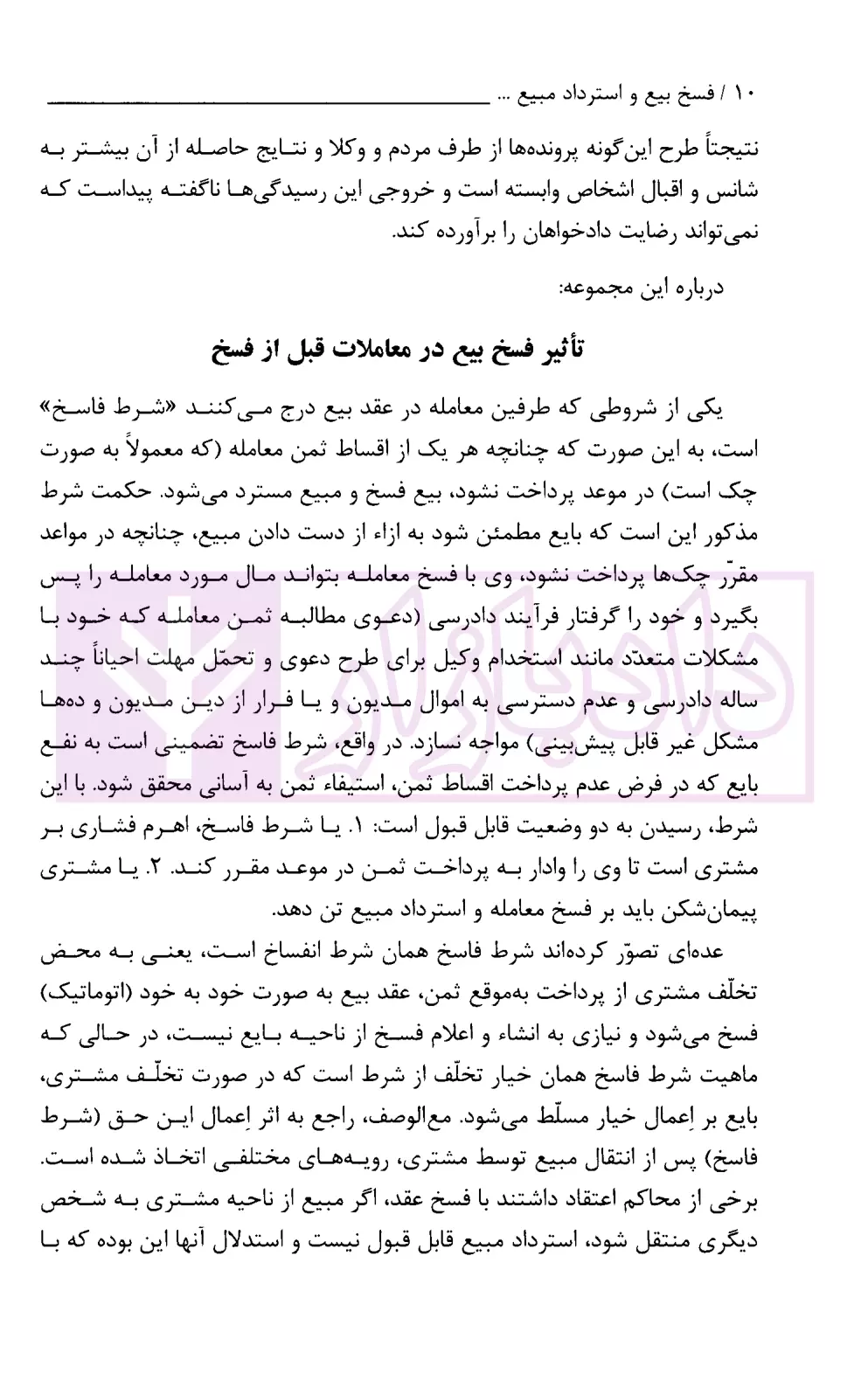 مشخصات و ویژگی کتاب فسخ بیع و استرداد مبیع (تاثیر فسخ بیع در معاملات قبل از فسخ) | دیوان عالی کشور