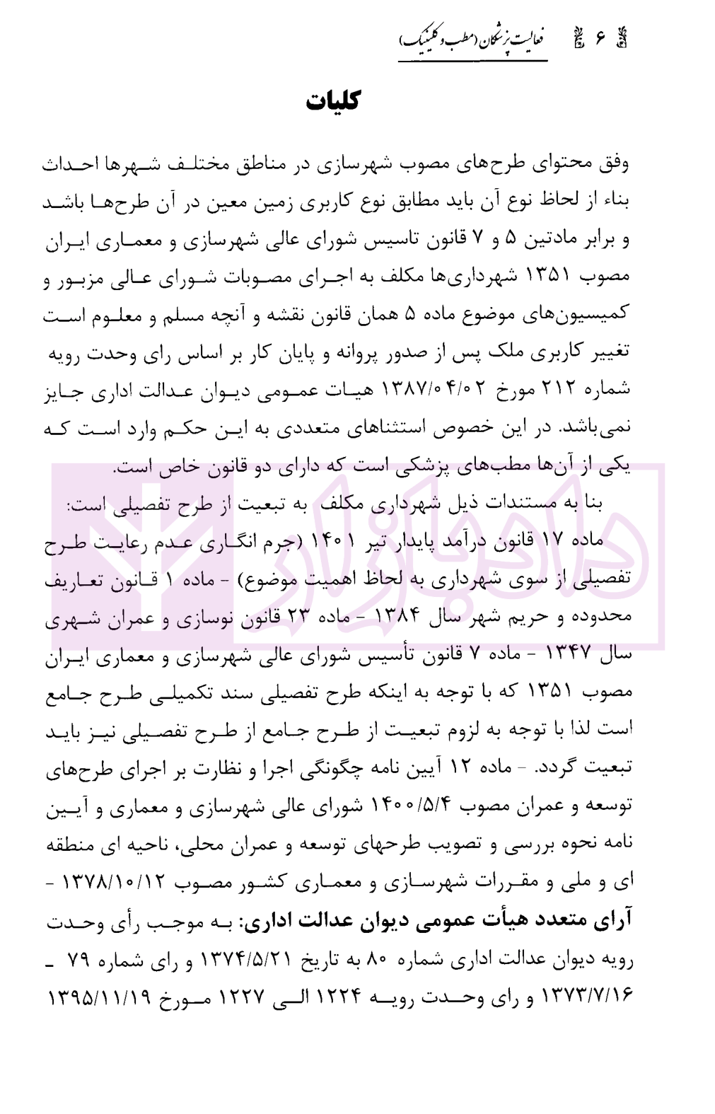امتیاز و دیدگاه کاربران فعالیت پزشکان (مطب و کلینیک) در مسائل حقوقی شهرداری ها با تکیه بر رویه قضایی دیوان عدالت اداری | محمدی