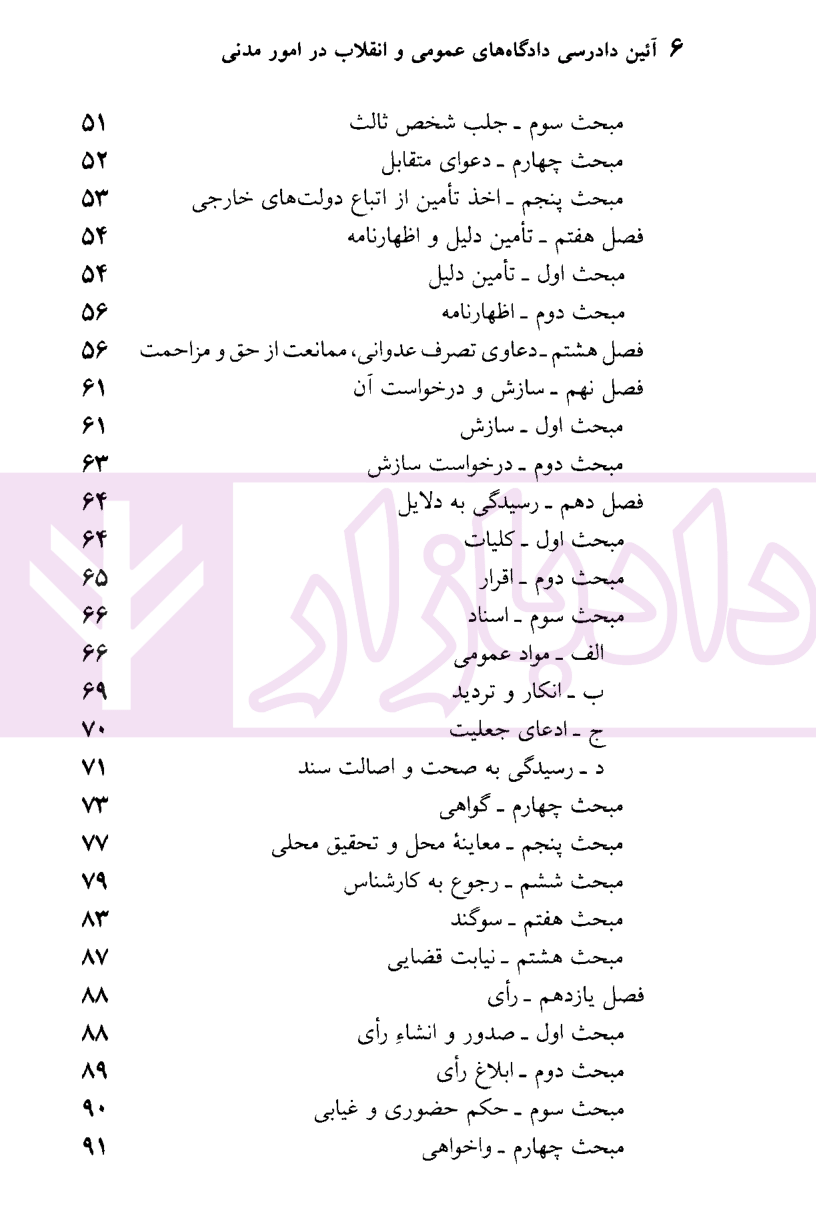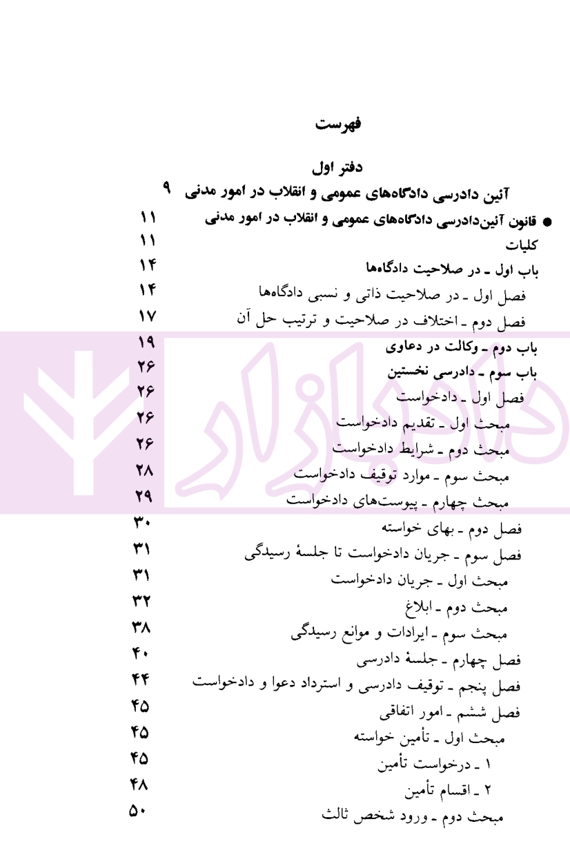 فهرست عناوین قانون آیین دادرسی مدنی منصور