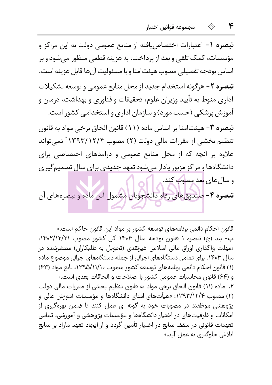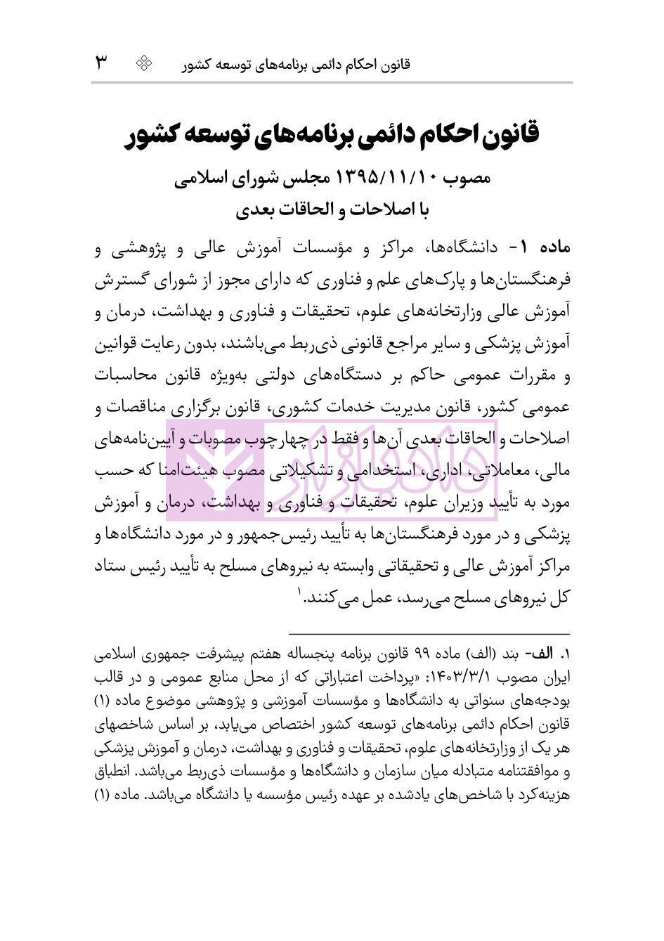 - ارائه متن قانون احکام دائمی برنامههای توسعه کشور با آخرین اصلاحات الحاقات تا آخر تیرماه 1403